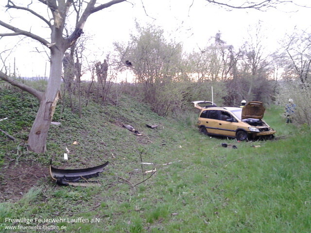 Vermutlich war eine überhöhte Geschwinigkeit der Grund dafür, dass der Fahrzeugführer, welcher mit seinem Kfz auf der L 1105 aus Richtung Ilsfeld kommend, auf Höhe des Landgraben die Kontrolle über sein Kfz verloren hat. Das Fahrzeug kam von der Fahrbahn ab und hat sich offensichtlich in dem rund drei Meter tieferliegenden Landgraben überschlagen und dabei noch einen Baum touchiert. Das Kfz, welches dann auf den Rädern zum stehen kam, begann im Bereich des Motorraumes zu brennen. Der Fahrer konnte sich äußerlich unverletzt, selbst aus dem Fahrzeug retten.