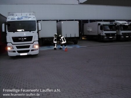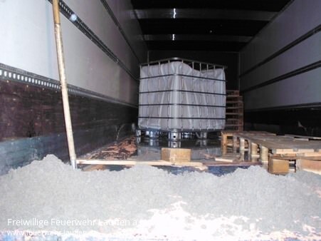 In einer Firma im Talheimer Industriebetrieb war aus bislang nicht geklärter Ursache ein sogenannter IBC auf einem LKW beschädigt worden und eine unbekannte Flüssigkeit lief aus.
