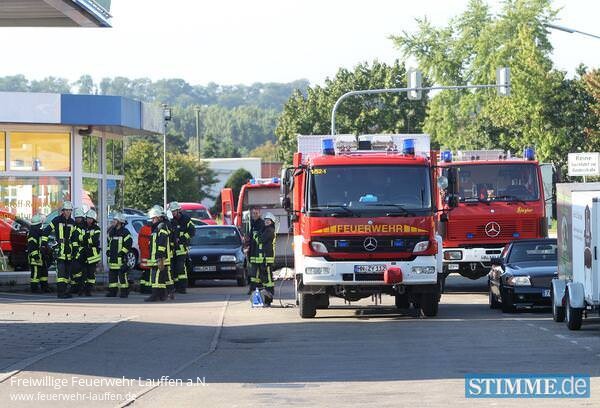 Gasgeruch war der Grund für einen Feuerwehr- und Polizeieinsatz am Freitag gegen 09.00 Uhr in Lauffen. An einer Tankstelle in der Stuttgarter Straße war dieser Geruch deutlich wahrzunehmen. Die Anlage, welche unter anderem auch über eine LPG-Zapfsäule verfügt, wurde sofort außer Betrieb genommen und abgesperrt. Der Verkehr auf der Bundesstraße 27 konnte ungehindert vorbeifließen. Gegen 10.00 Uhr wurde der Einsatz beendet. Messungen der Feuerwehr ergaben keine Hinweise auf eine weitere Gefährdung. Ob es sich um Gasgeruch oder Benzindämpfe handelte, muss noch geklärt werden. Die Feuerwehr war mit fünf Fahrzeug und 32 Einsatzkräften vor Ort.