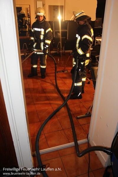 Von der Feuerwehr wurde bei der Suche nach der Ursache festgestellt, dass es sich um einen Wasseraustritt im dem verschlossenen Frisörladen handeln muss. Da der Betreiber des Ladengeschäftes nicht erreichbar war, wurde im Beisein der Polizei eine Türe geöffnet.