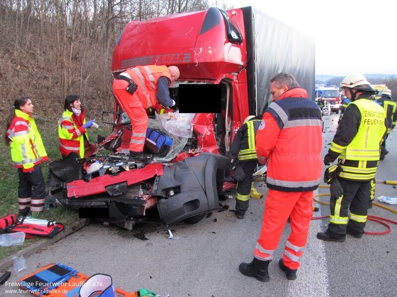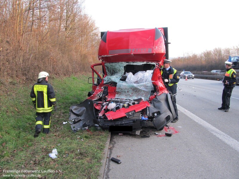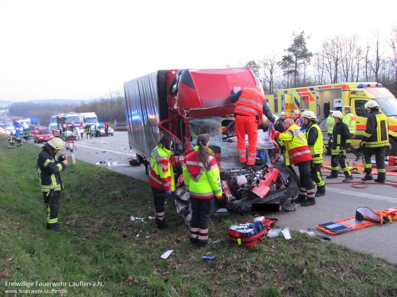 eingeliefert werden. Lebensgefahr kann laut Polizei nicht ausgeschlossen werden. Langer Stau Während der Rettungsarbeiten sperrte die Feuerwehr zwei Fahrspuren, wodurch sich ein zwölf Kilometer langer Stau bildete. Nachdem die Rettungskräfte den Schwerverletzten befreit hatten, säuberte die Feuerwehr die Fahrbahn.