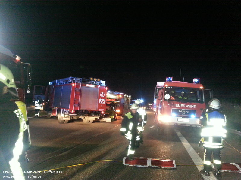 Die freiwillige Feuerwehr Ilsfeld wurde am Montag, den 17.03.2014 um 20:42 Uhr zu einem Gefahrgutunfall auf der A81 Richtung Würzburg kurz vor der Anschlussstelle Untergruppenbach alarmiert.