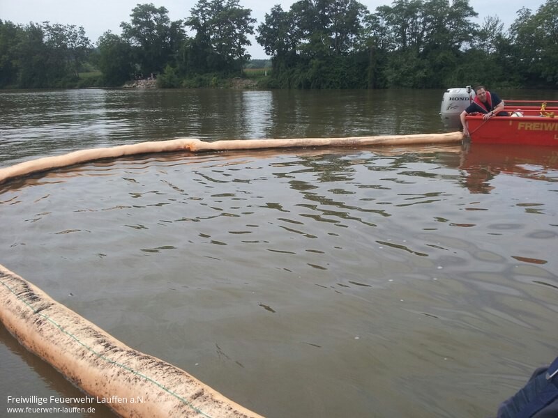 Kurz vor dem Festumzug im Rahmen der Feierlichkeiten „100 Jahre Stadt und Dorf“, erreichte die Feuerwehr eine Alarmierung wegen einer Gewässerverunreingung im Neckar-Oberwasser.
