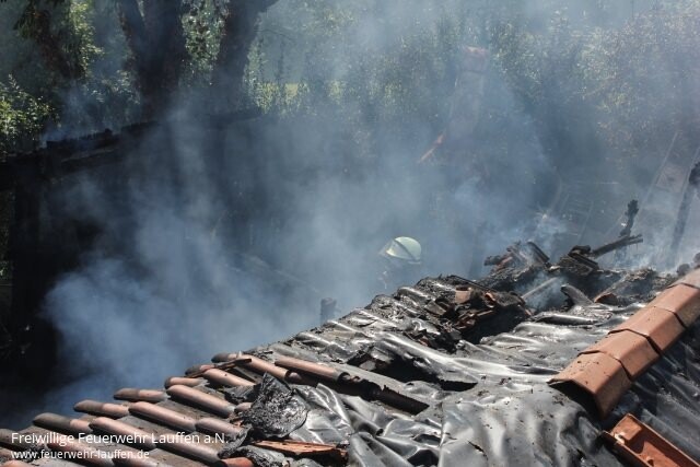 Trotz dem schnellen Vorgehen der Feuerwehr und dem massiven Wassereinsatz konnte das Abbrennen der Gartenhütte nicht verhindert werden.