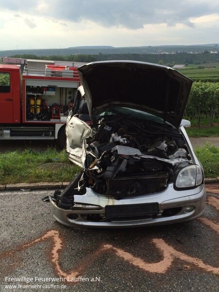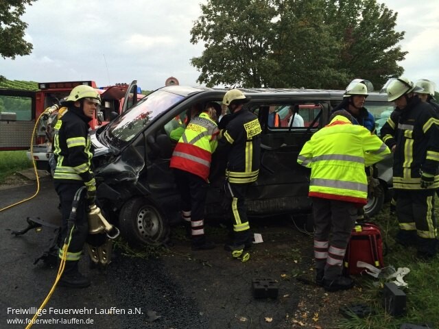 Von der Feuerwehr wurden am Kleintransporter die Fahrzeugtüren mit hydraulischem Gerät geöffnet um dem Rettungsdienst einen Zugang und die Versorgung der beiden Fahrzeuginsassen zu ermöglichen. Im zweiten Fahrzeug wurde die Person durch den Unfallmechanismus vom Fahrersitz in den Kofferraum geschleudert. Diese Person musste per Crashrettung über den Kofferraum aus dem Fahrzeug befreit werden, um dann vom Rettungshubschrauber in ein Klinikum verbracht zu werden.