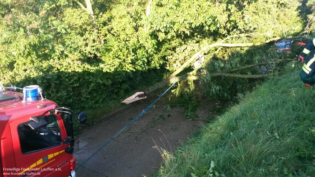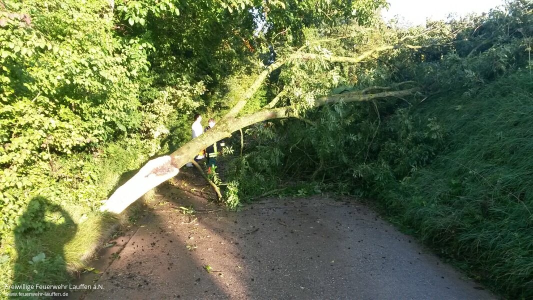 Weil ein größerer Ast nach Regenfällen und Windböen in einem schlecht einsehbaren Kurvenbereich gestürzt ist, wurde die Feuerwehr alarmiert.