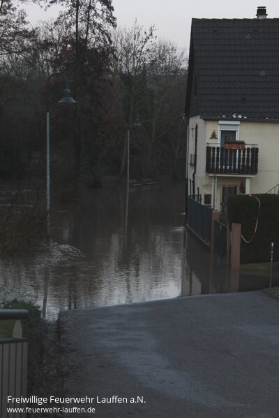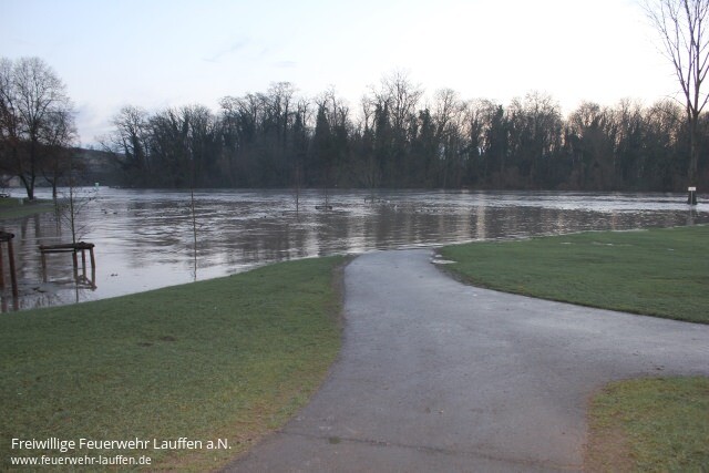 Ab 01:00 Uhr wurde bei einem Pegelstand des Neckar von 4,70 m das Feuerwehrhaus mit einer Hochwasserbereitschaft besetzt. Die Nacht über konnte dann weiter ein Anstieg des Neckarpegel verzeichnet werden, welcher gegen 9 Uhr seinen Höchststand von 5,56 m erreicht und zu teilweisen Überflutungen geführt hat.