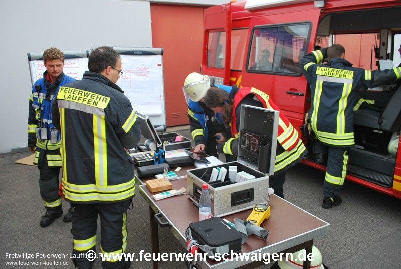 Mit den beiden Gerätewagen-Messtechnik aus Lauffen a.N. und Neckarsulm wurden permanent Gefahrstoffmessungen, sowohl direkt an der Einsatzstelle als auch in Ausbreitungsrichtung der Rauchwolke in Richtung Leingarten, durchgeführt. Die Ergebnisse wurden von den beiden Fachberatern Chemie, Dr. Stefan Sendelbach und Sigrid Aßfalg, bewertet. Die Messungen ergaben nur minimal erhöhte Schadstoffkonzentrationen, die aber zu keinem Zeitpunkt irgendeine Gefährdung für die Bevölkerung darstellten.