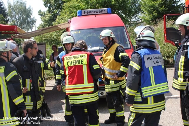 Die Feuerwehr ermittelte über ein Sicherheitdatenblatt die Beschaffenheit des austretenden Stoffs, schloss die Leckage und belüftete das Gebäude. Zur Sicherheit wurde im Einsatzverlauf die Feuwehr Lauffen mit dem GW-Mess angefordert, um im Nachgang eine gefahrlose Nutzung der Veranstaltungshalle gewährleisten zu können. Es wurden umfangreiche Messungen mit negativem Befund durchgeführt.