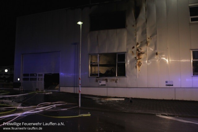 Mit dem Alarmstichwort „Objektalarm“ ist die Feuerwehr Lauffen in den frühen Morgenstunden ins Industriegebiet „Vorderes Burgfeld“ alarmiert worden, da zuvor die Einbruchmeldeanlage bei der Polizei aufgelaufen und ein Brand bestätigt worden ist. Personen befanden sich nicht im Gebäude.