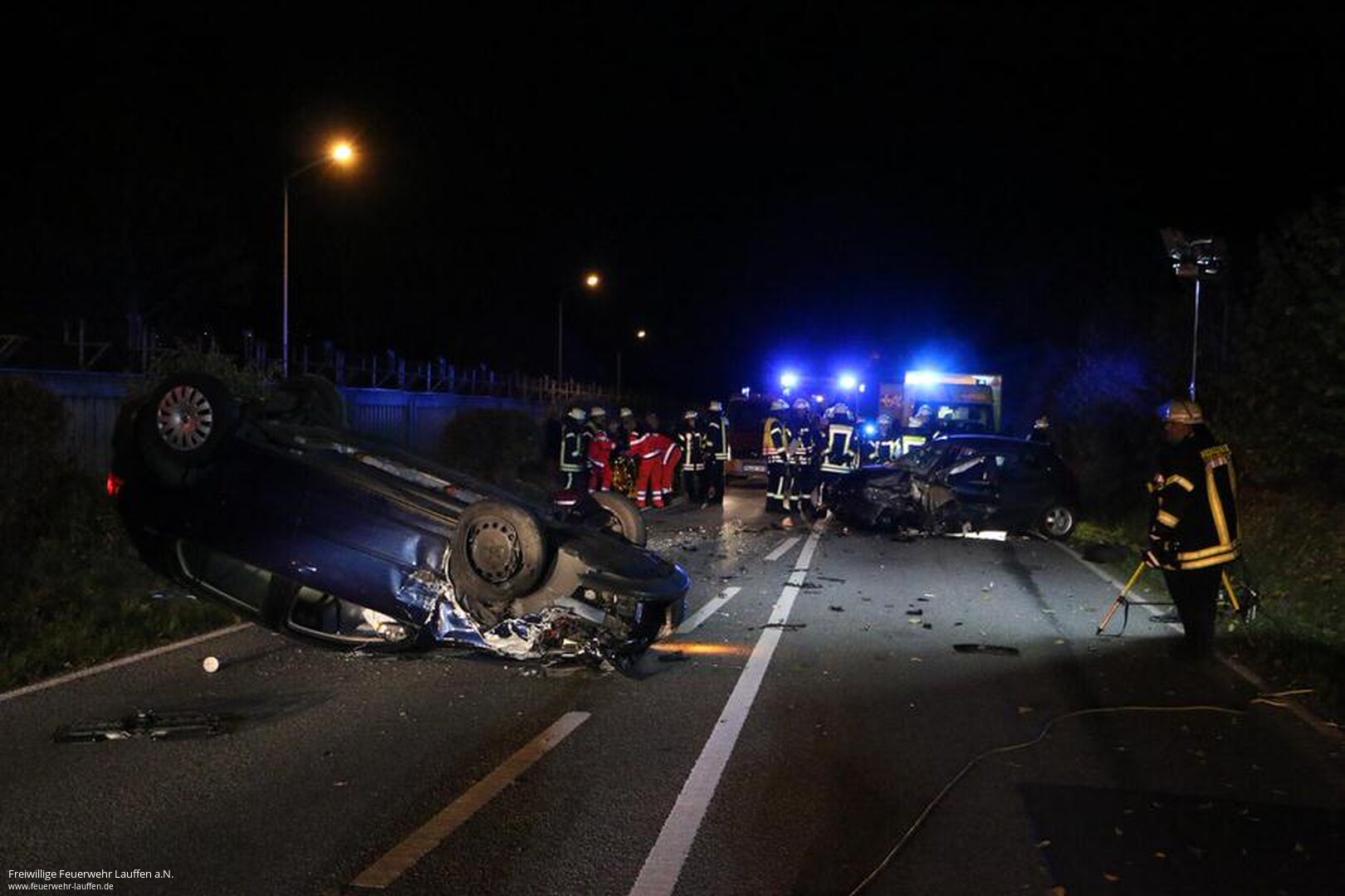 Vor Ort waren zwei PKWs frontal aufeinandergestoßen. Durch ein versuchtes Ausweichmannöver und den Aufprall wurde ein Fahrzeug auf sein Dach geschleudert. Alle drei verletzte Personen wurden von der Feuerwehr und dem Rettungsdienst betreut und anschließend in Krankenhäuser eingeliefert. Die Unfallstelle wurde ausgeleuchtet, der Brandschutz sichergestellt und die Fahrzeuge stromlos geschalten. Es erfolgte eine Komplettsperrung der Verbindungsstraße Neckarwestheim-Gemmrigheim.