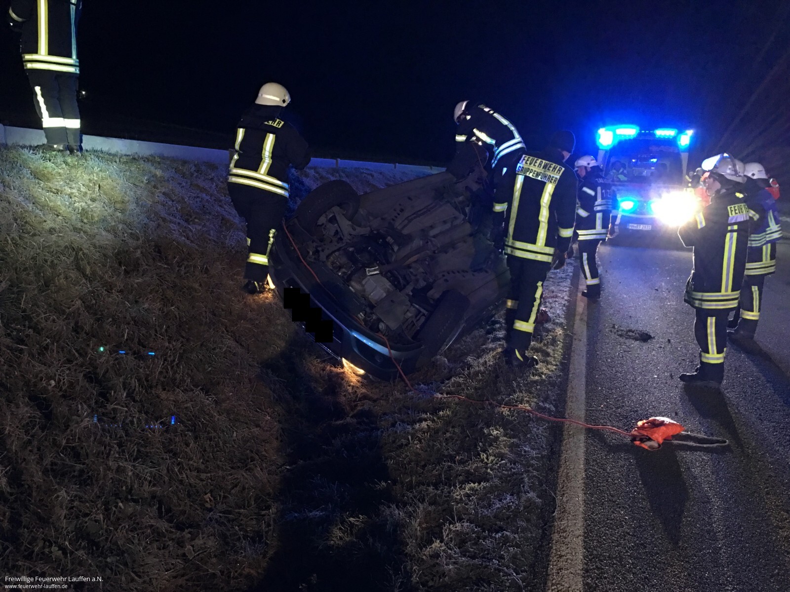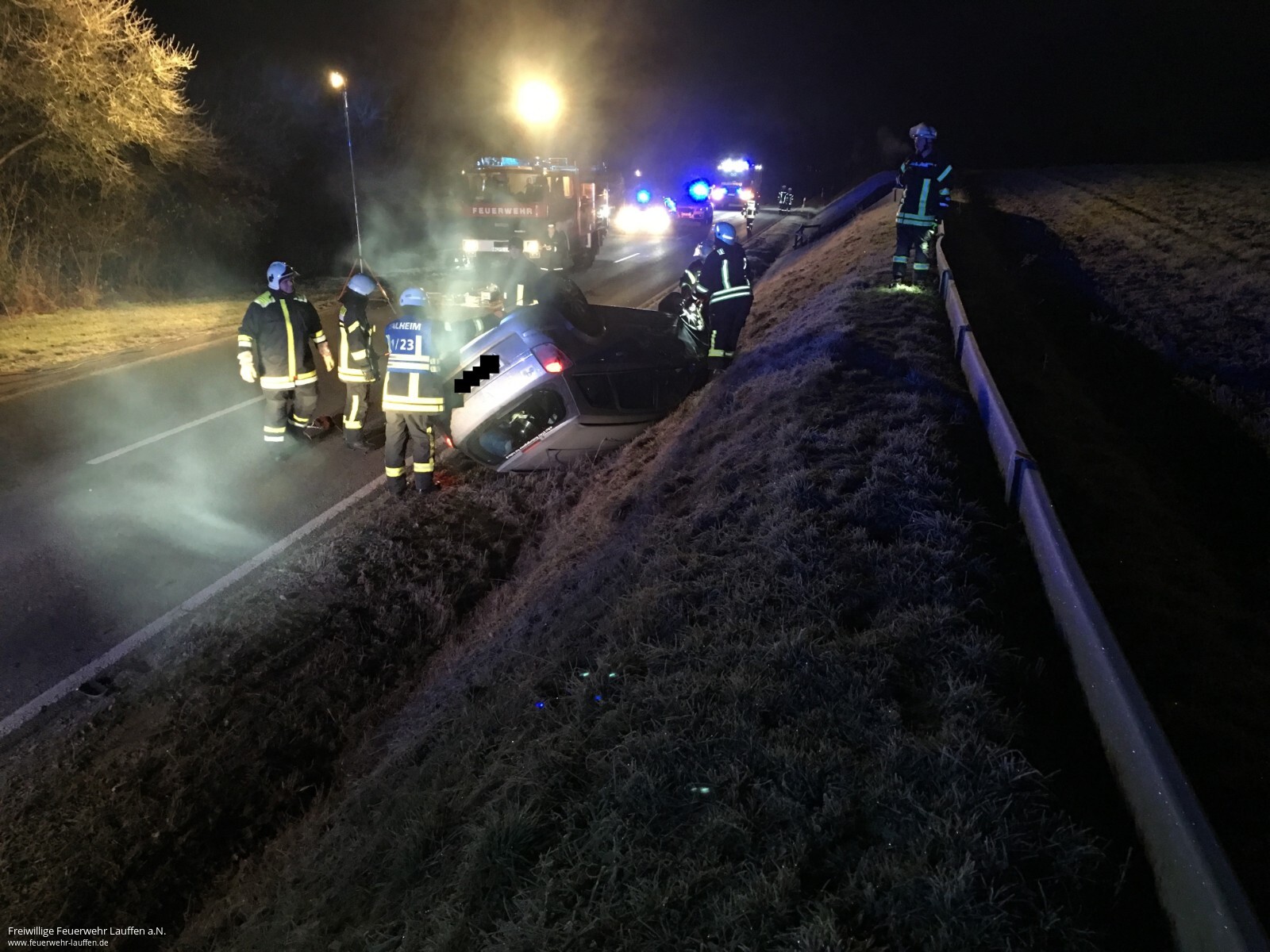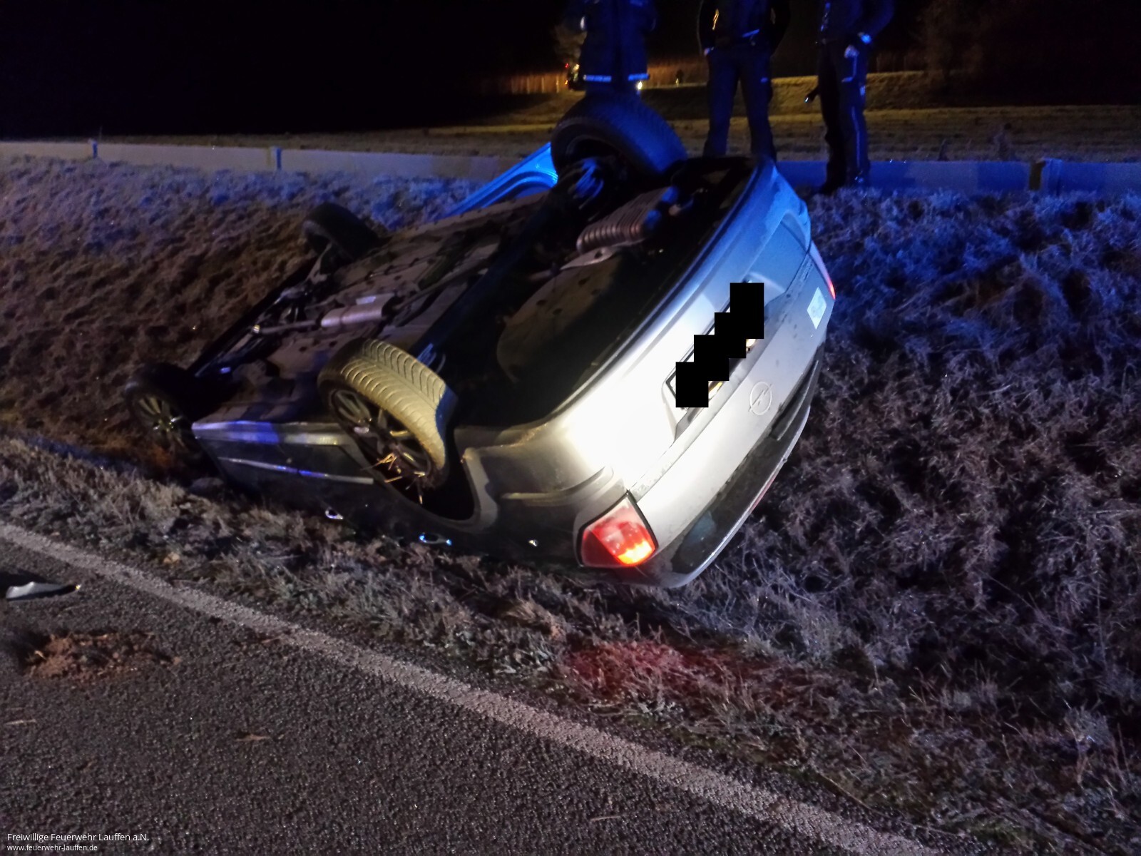 Mit dem Alarmierungsstichwort „Technische Hilfeleistung Verkehrsunfall PKW, 1 Person eingeklemmt „wurde die Feuerwehr Talheim am 04.12.2016 um 04:33 Uhr K2155 auf Höhe des Frankelbachsee alarmiert.Beim Eintreffen lag ein Opel Astra auf dem Dach im Seitenstreifen der Fahrbahn. „Fahrer nicht auffindbar“