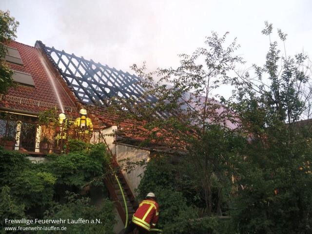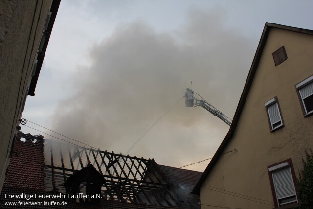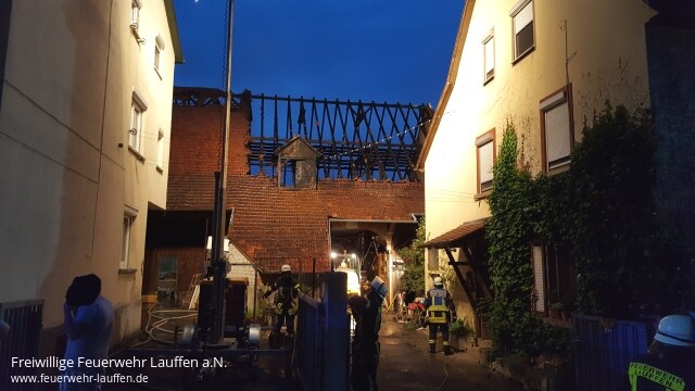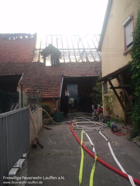 Trotz des schnellen und gezielten Löscheinsatz, konnte die Scheune nicht mehr gerettet werden. Während des Einsatzes, an welchem auch mehrere Fahrzeuge des Rettungsdienst, des DRK OV-Lauffen eingestzt waren, wurden die geschädigten Bewohner und Anwohner durch Kräfte der Notfallseelsorge betreut.