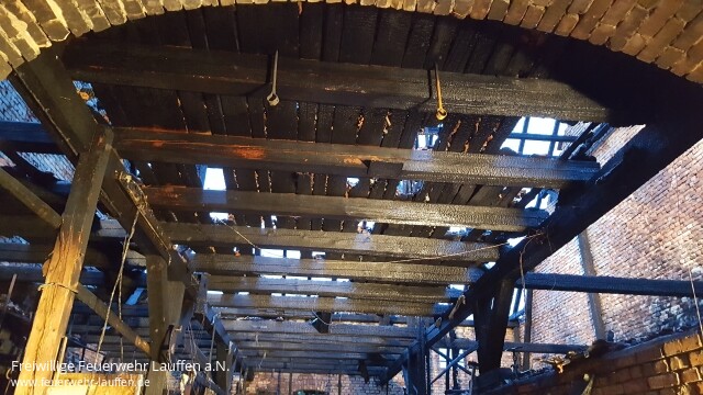 Über Nacht wurde durch die Feuerwehr eine Brandwache gestellt, welche mehrfach noch Glutnester ablöschen musste.