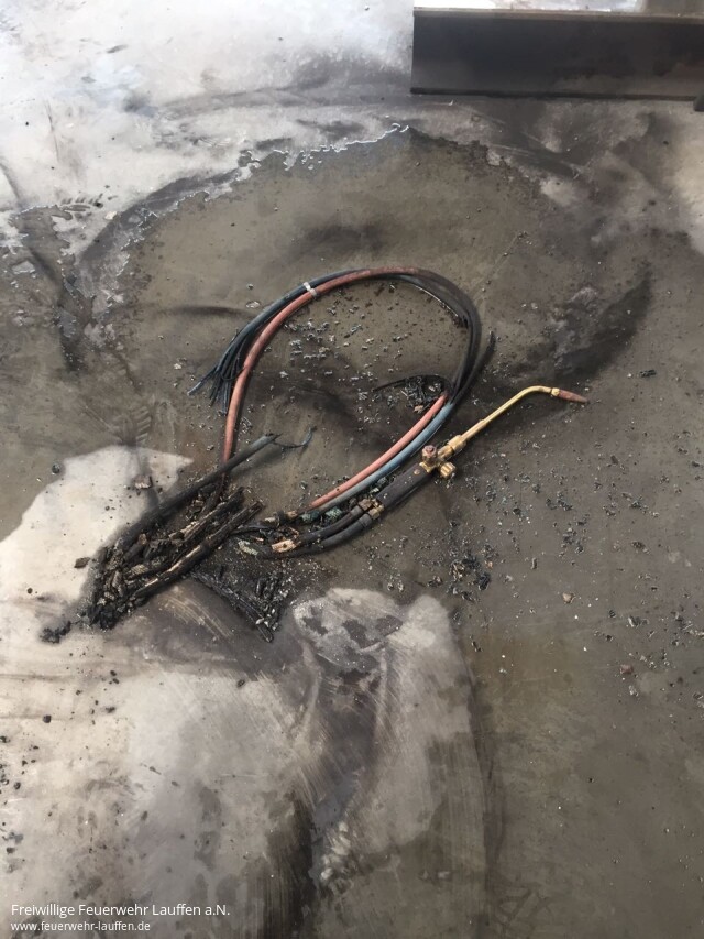 Bis zum Eintreffen der Feuerwehr war bereits eine verletzte Person zur medizinischen Versorgung abtransportiert worden. Durch die Firmenmitarbeiter wurden die Gasflaschen sofort abgedreht und eine Holzpalette abgelöscht.