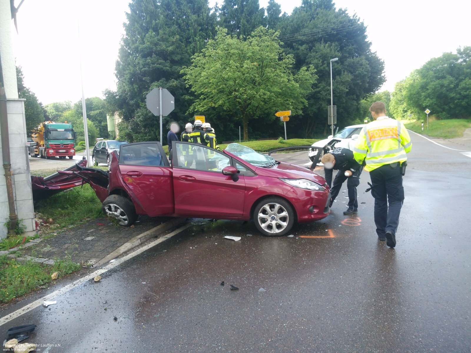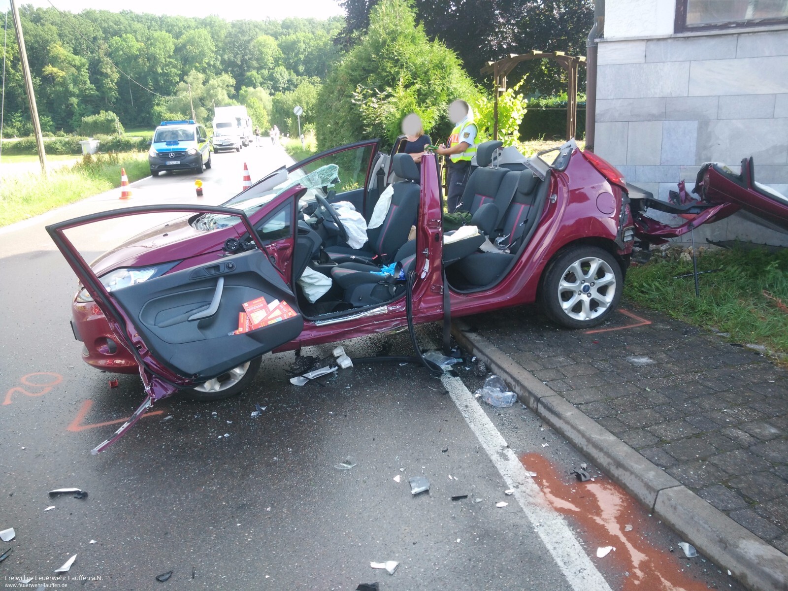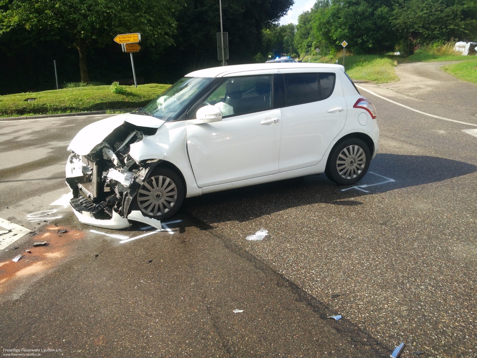 Am Dienstagmorgen wurden die Feuerwehren Neckarwestheim und Lauffen a.N. zur Kreuzung K2085/K2156 in den Neckarwestheimer Ortsteil Pfahlhof alarmiert. Nach einem Zusammenstoß zweier PKW war eine der beiden Fahrerinnen in ihrem PKW eingeschlossen. Nachdem die Unfallstelle und der Unfallwagen abgesichert waren, wurde mit schwerem technischen Rettungsgerät die Fahrertür geöffnet und anschließend das Dach des PKW entfernt. In Zusammenarbeit mit dem Rettungsdienst wurde dann eine achsengerechte Rettung der Patientin über das Heck durchgeführt. Die Fahrerinnen beider PKW wurden anschließend durch Rettungswägen in Krankenhäuser eingeliefert. Während den Rettungsmaßnahmen und der Unfallaufnahme durch die Polizei war die Kreuzung für über eine Stunde voll gesperrt.