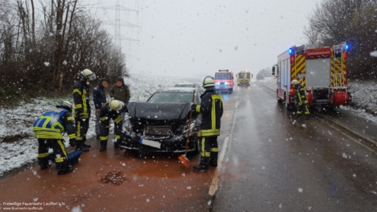 Wegen auslaufender Betriebsstoffe, nach Unfällen auf der B 27 im Bereich zwischen dem Talheimer Grund und der Ampelkreuzung Talheim/Horkheim, wurde die Feuerwehr Lauffen alarmiert, da in Talheim gerade der große Faschingsumzug im Gange war.