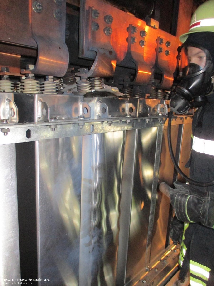Am 25. Februar 2018 gegen 1:12 Uhr nachts wurden die Feuerwehren Neckarwestheim und Lauffen zu einem Brand in das Bahnstromumrichterwerk gegenüber des Kernkraftwerks alarmiert. Der Ansprechpartner des Anlagenbetreibers war bereits vor Ort und es konnte somit umgehend eine Lageerkundung vorgenommen werden. Parallel wurde die Wasserversorgung von der Saugstelle des Löschwasserbehälters vor dem Gelände aufgebaut.