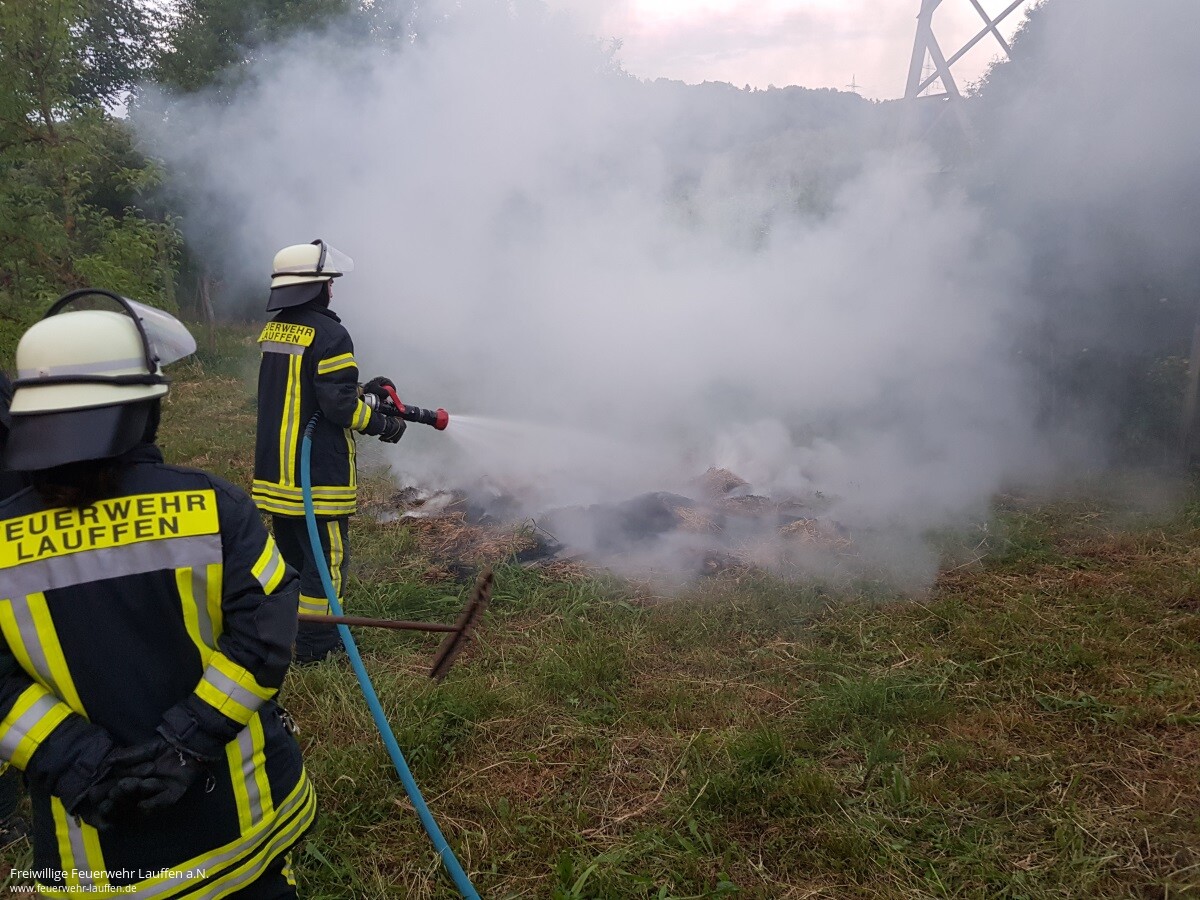 Die Erkundung ergab dann, dass eine Bewirtschafterin eines an das Umspannwerk angrenzenden Gartengrundstück, das am Vortag gemähte und noch feuchte Gras verbrannt hat. Mit einer Harke wurde der feuchte und stark qualmende Grashaufen auseinander gezogen und schließlich mit der Schnellangriffeinrichtung abgelöscht.