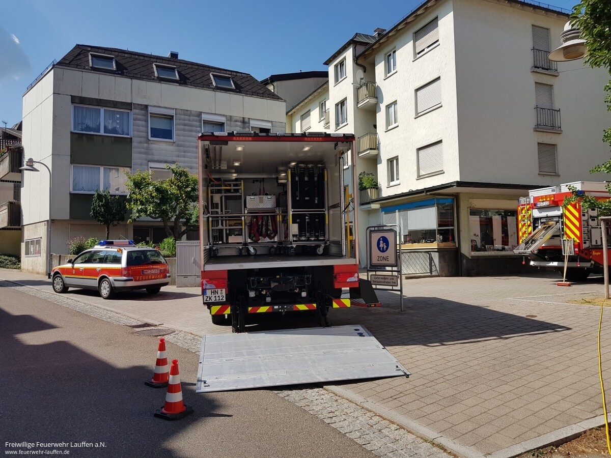 Weil ein Bewohner eines Mehrfamilien- und Geschäftshaus im Zentrum von Lauffen, stehendes Wasser auf dem Treppenhausboden und im Keller festgestellt hatte, machte sich dieser auf die Suche nach der Ursache. In diesem Zusammenhang stellte er fest, dass auch ein Ladenlokal im Erdgeschoss des Gebäudes vom Wasser betroffen war.