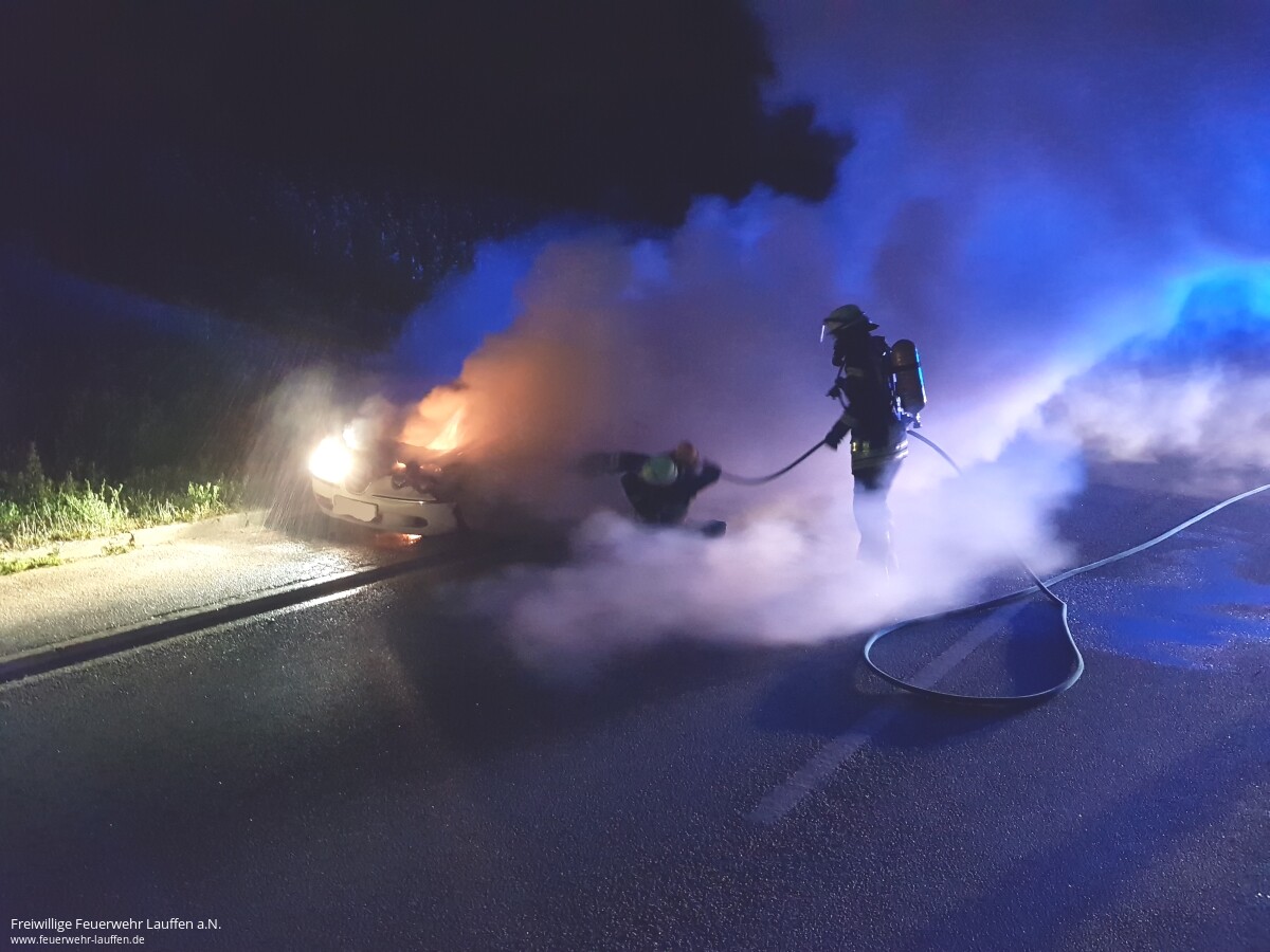Weil ein Verkehrsteilnehmer, welcher in den Nachtstunden mit seinem PKW auf der L1103 zwischen Lauffen und Meimsheim unterwegs war, einen Schmorgeruch und im weiteren Verlauf auch Rauch im Innenraum wahrgenommen hatte, stellte dieser sein Fahrzeug am Straßenrand ab und versuchte noch mit einem kleinen Autofeuerlöscher, die zwischenzeitlich sichtbaren Flammen am PKW zu löschen.