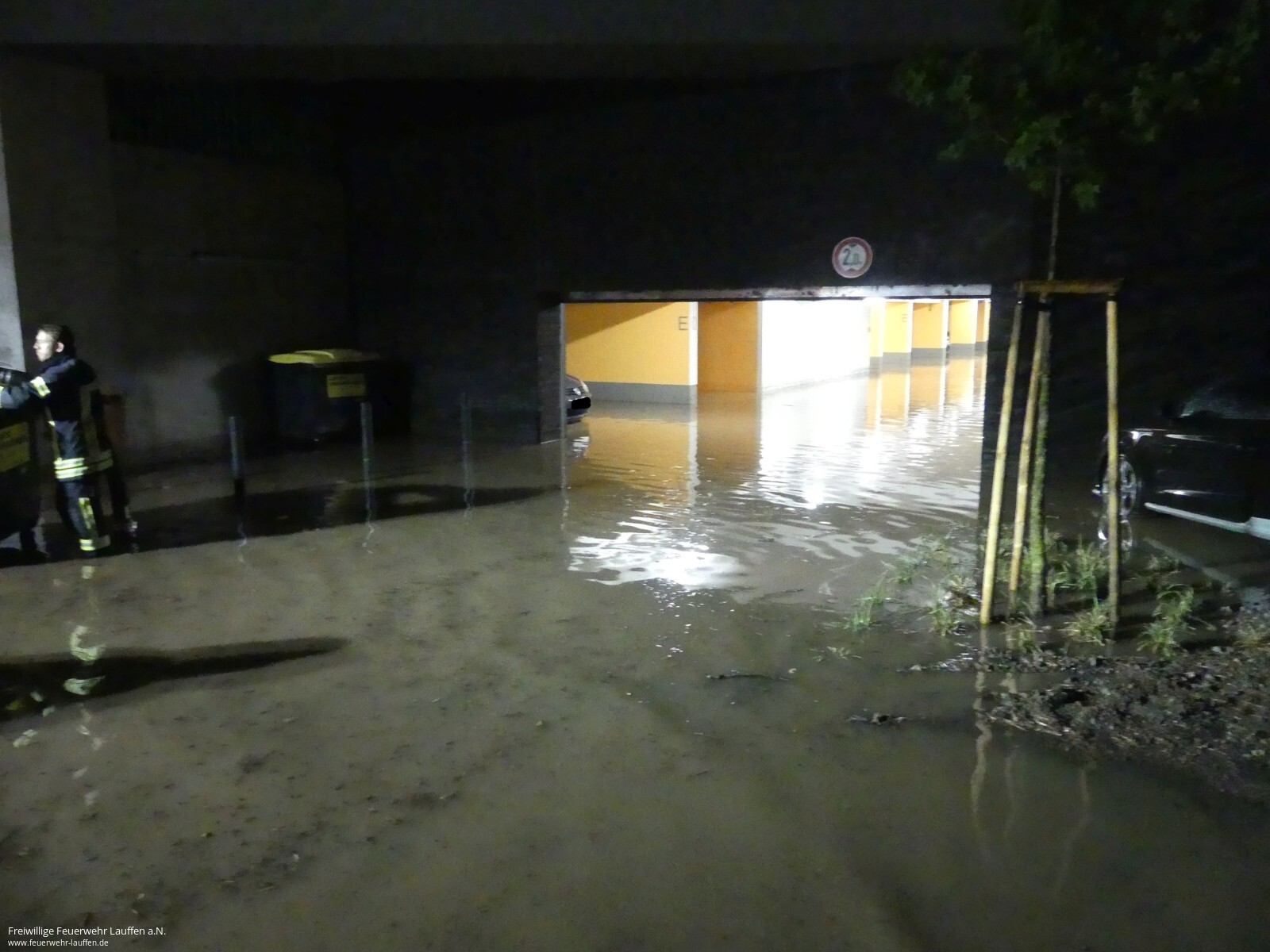 Das Unwetter bereitete den Feuerwehrleuten zusätzliche Arbeit, da ausgerechnet an diesem Wochenende ein Tag der offenen Tür auf der Hauptfeuerwache durchgeführt wurde und diese von den Wassermassen auch nicht verschont blieb.