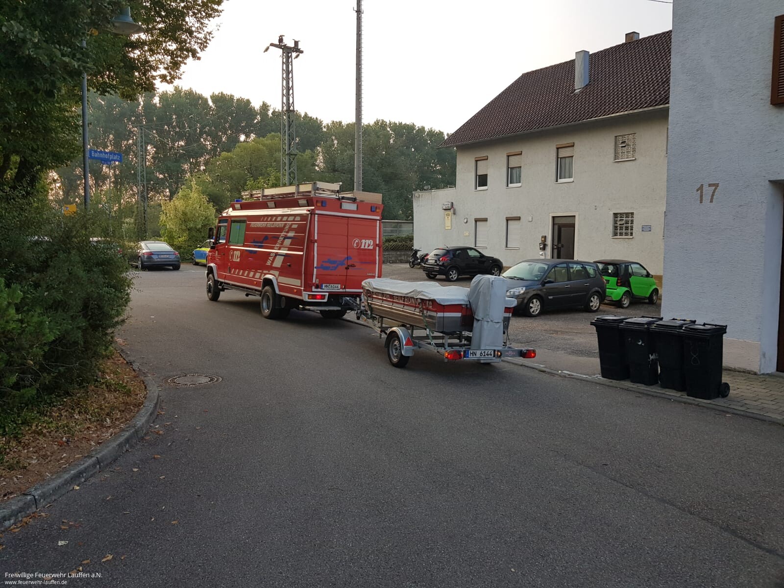 Eine seit Montag vermisste Frau wurde von einem Fahrgast der Deutschen Bahn am Mittwochmorgen im „Alten Neckar“ treibend aufgefunden. Die zuerst alarmierte Polizei konnte die Seniorin einige Meter unterhalb des Nordheimer Bahnhaltepunkts aus dem Wasser retten. Die Wasserrettungszüge der Feuerwehr Heilbronn und DLRG mussten daraufhin nicht mehr tätig werden. Somit beschränkte sich die Arbeit für die Feuerwehren Nordheim und Lauffen auf die Rettung aus dem unwegsamen Ufergelände. Mittels Steckleitern, Leinen und einer Schleifkorbtrage wurde die Patientin auf das Gleisniveau gehoben und mit einem auf Schienen beweglichen Rollwagen zum Bahnsteig transportiert.