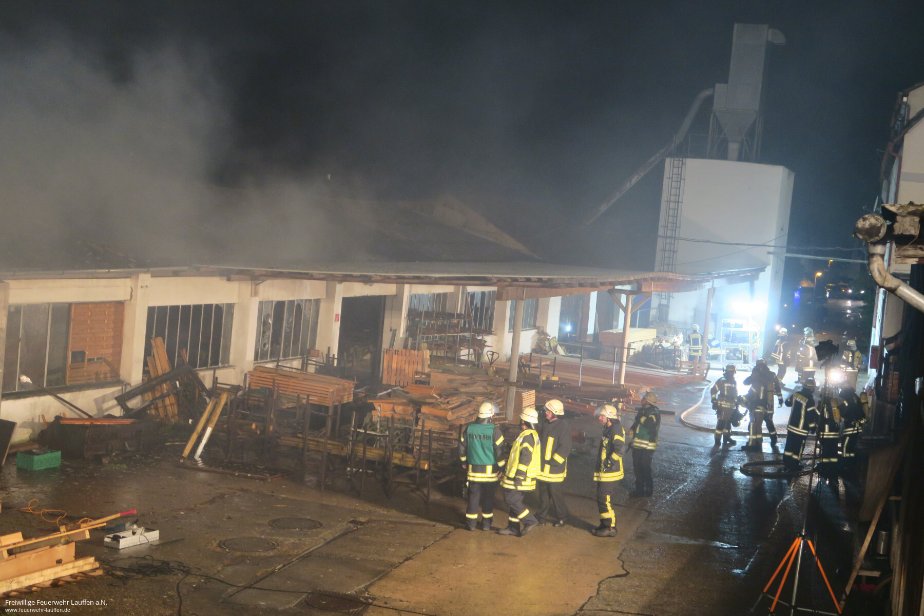 Vor Ort brannte eine Werkstatt in einem holzverarbeitenden Betrieb. Wegen des Bedarfs an Atemschutzgeräten wurde der Abrollbehälter Atemschutz von der Feuerwehr Heilbronn nachalarmiert. Auch Kreisbrandmeister Vogel kam vor Ort.