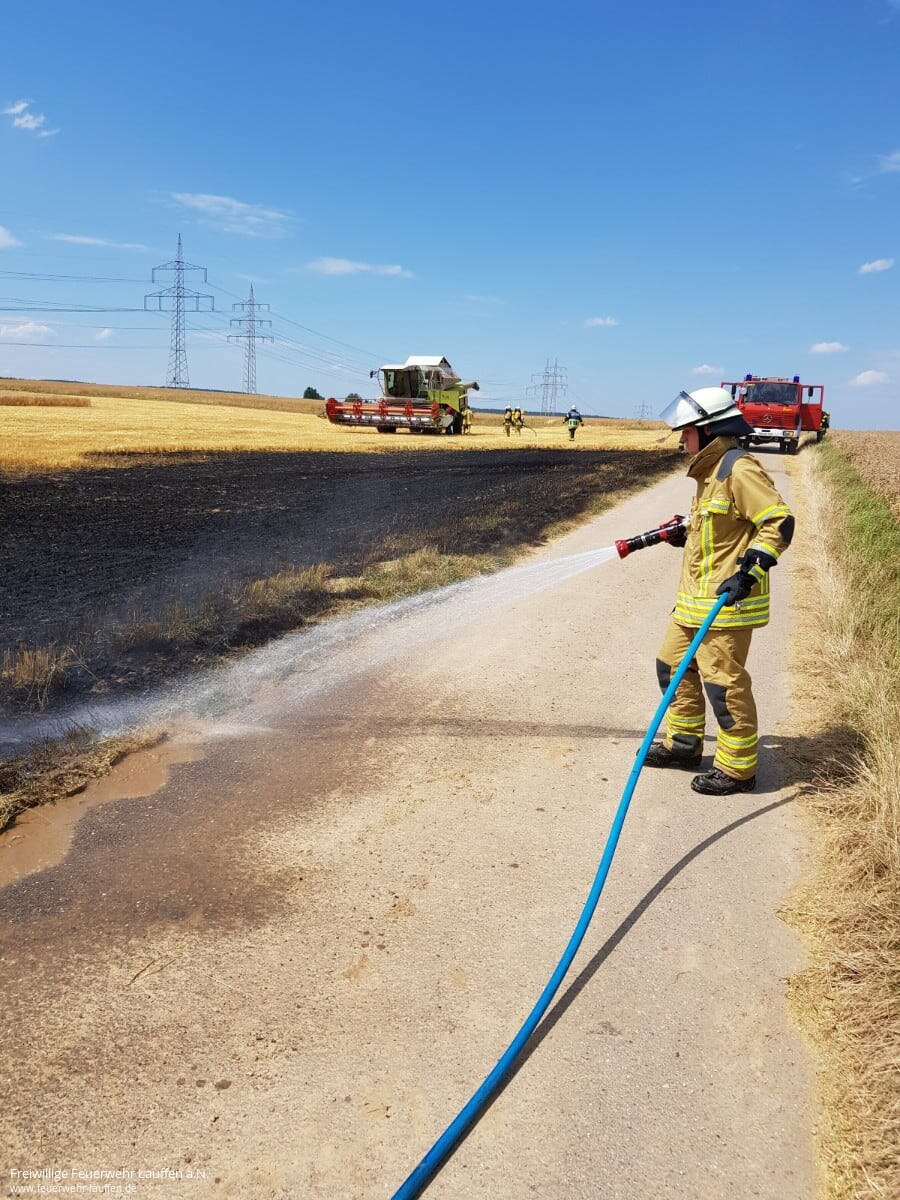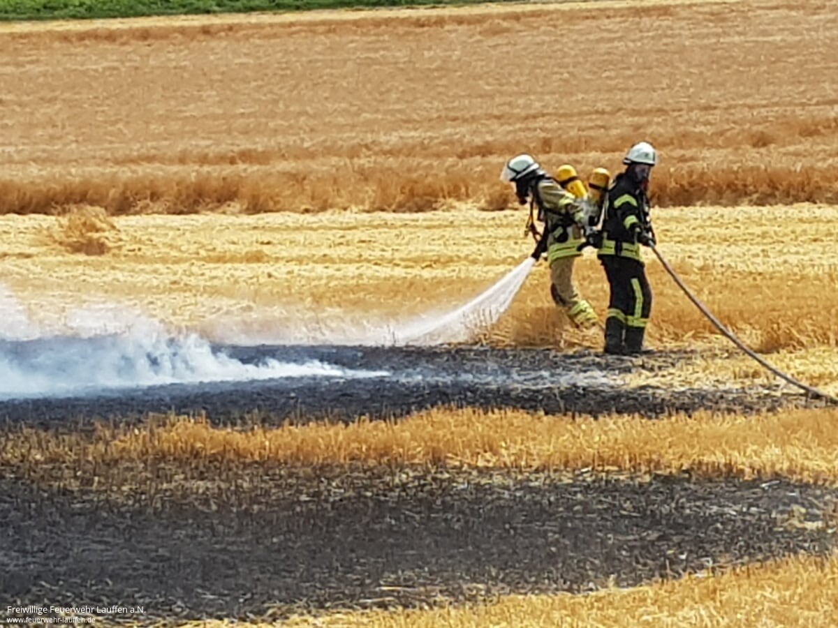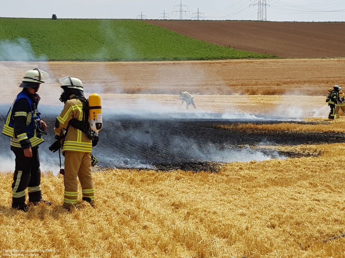 Da bei Alarmeingang gerade das Wochenende „JF goes BF“ der Lauffener Jugendfeuerwehr stattgefunden hat, konnte das zu einem Übungseinsatz ausgerückte Tanklöschfahrzeug qualifiziert besetzt zur Einsatzstelle ausrücken. Vor Ort konnte kein brennender Mähdrescher sondern „nur“ ein Flächenbrand in der größe eines halben Fußballfeldes angetroffen werden.