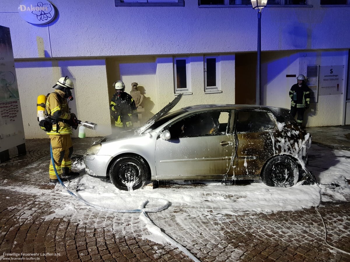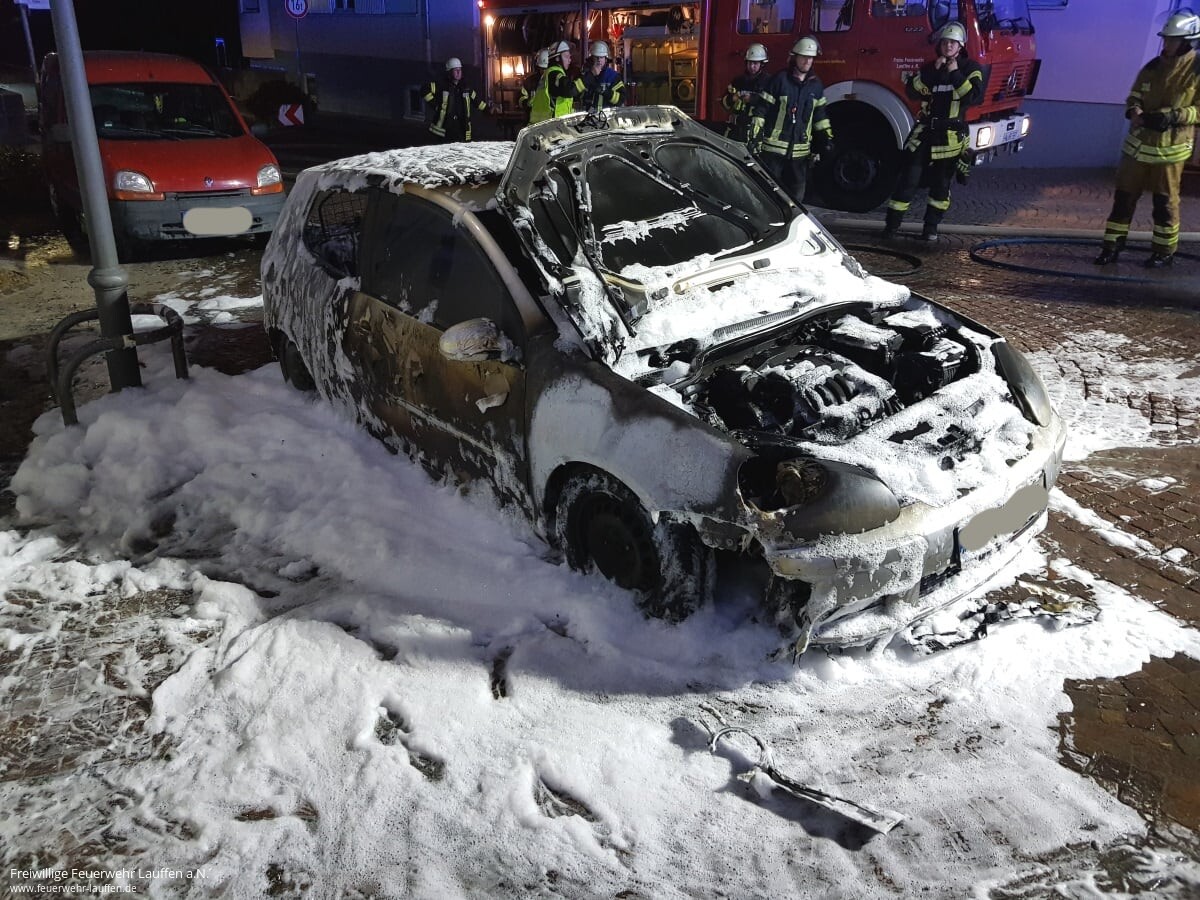 Durch das schnelle Vorgehen der Feuerwehr konnte ein Übergreifen des Feuers auf das Gebäude verhindert werden und es musste nur der Schaden am PKW beklagt werden, welcher allerdings in einem Totalschaden endete. Abschließend wurde der ausgebrannte PKW der Polizei und den zwischenzeitlich eingetroffenen Besitzern übergeben.