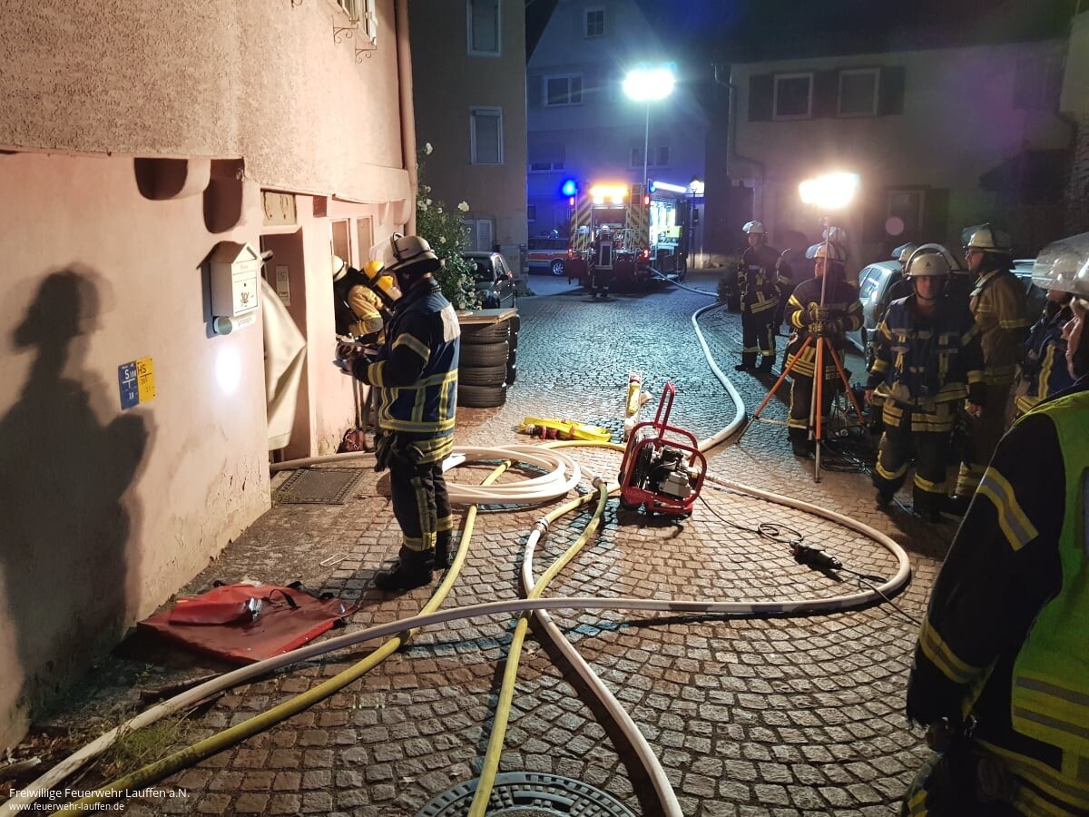 In den Nachtstunden ist es vermutlich durch einen Kabelbrand zu einem Feuer und einer starken Rauchentwicklung in einem Lagerraum im Erdgeschoss eine Wohngebäudes im „Städtle gekommen.