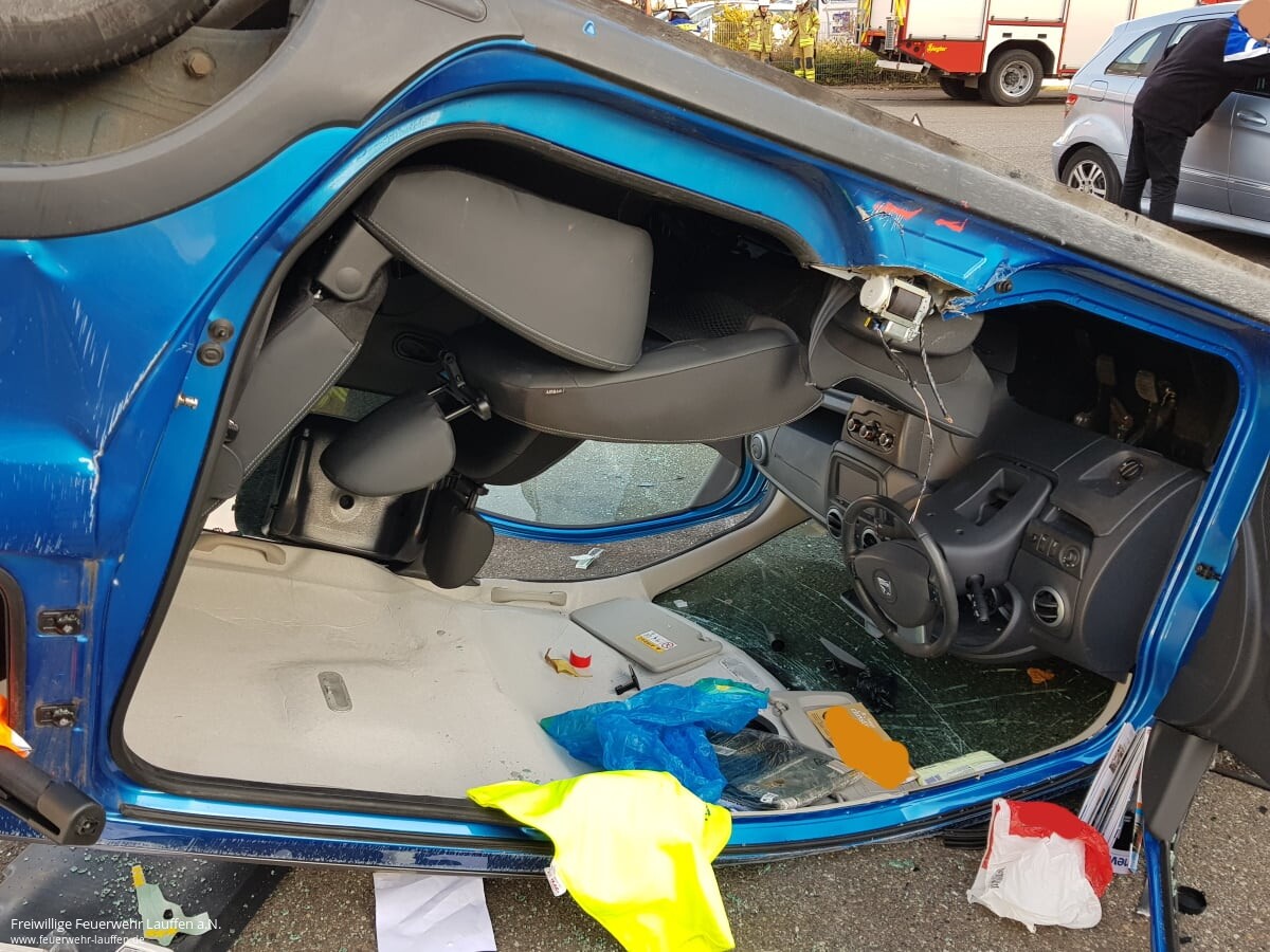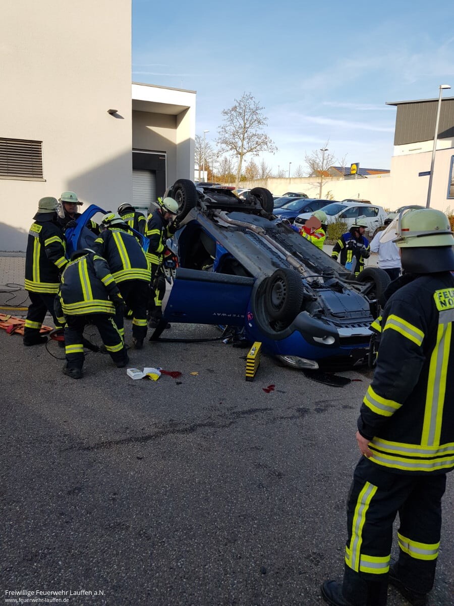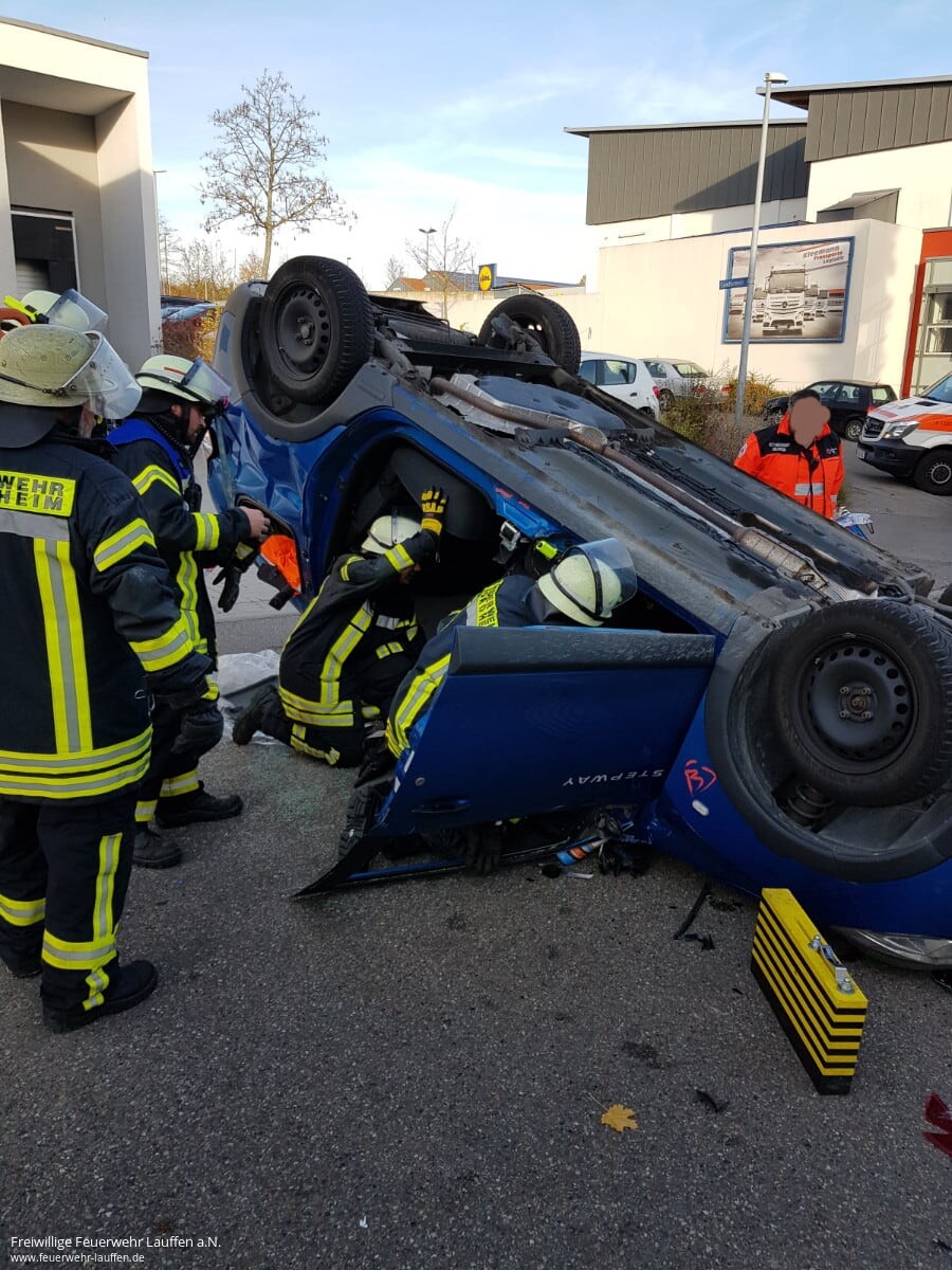 Bis zum Eintreffen der Kräfte aus Lauffen und Heilbronn war der auf dem Dach liegende PKW bereits durch ein Stab-Fast-System abgesichert. Durch Notarzt und Rettungsdienst wurde die im PKW liegende Person versorgt und betreut, während von der Feuerwehr auf der anderen Fahrzeugseite her eine Rettungsöffnung geschaffen worden ist. Die weiteren Unfallbeteiligten wurden von der Feuerwehr und dem Rettungsdienst betreut.