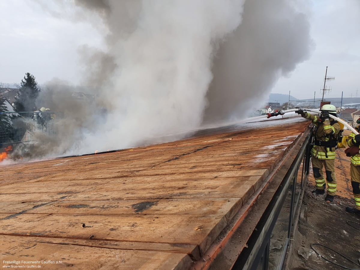 Mit dem Alarmstichwort Dachstockbrand wurde die Feuerwehr Lauffen a.N. zur Hölderlin-Werkrealschule alarmiert, an welcher im Augenblick Sanierungsarbeiten am Dach stattfinden.