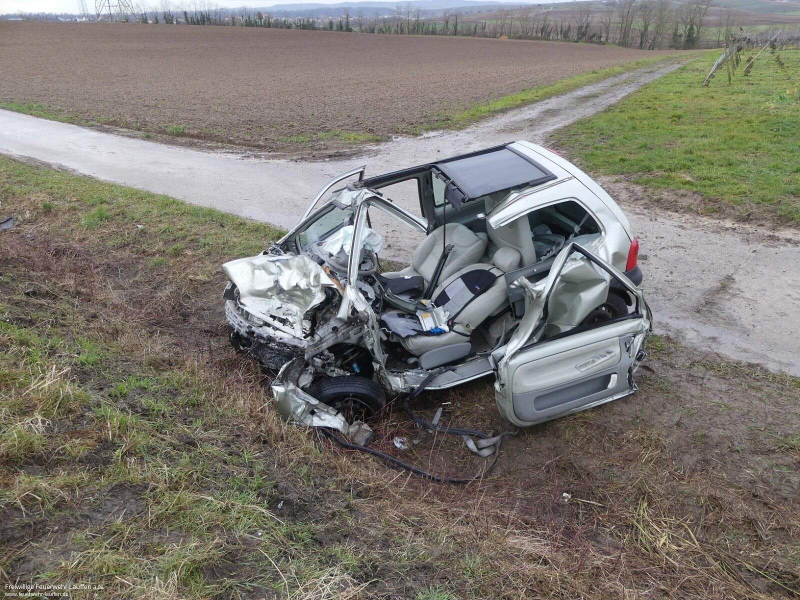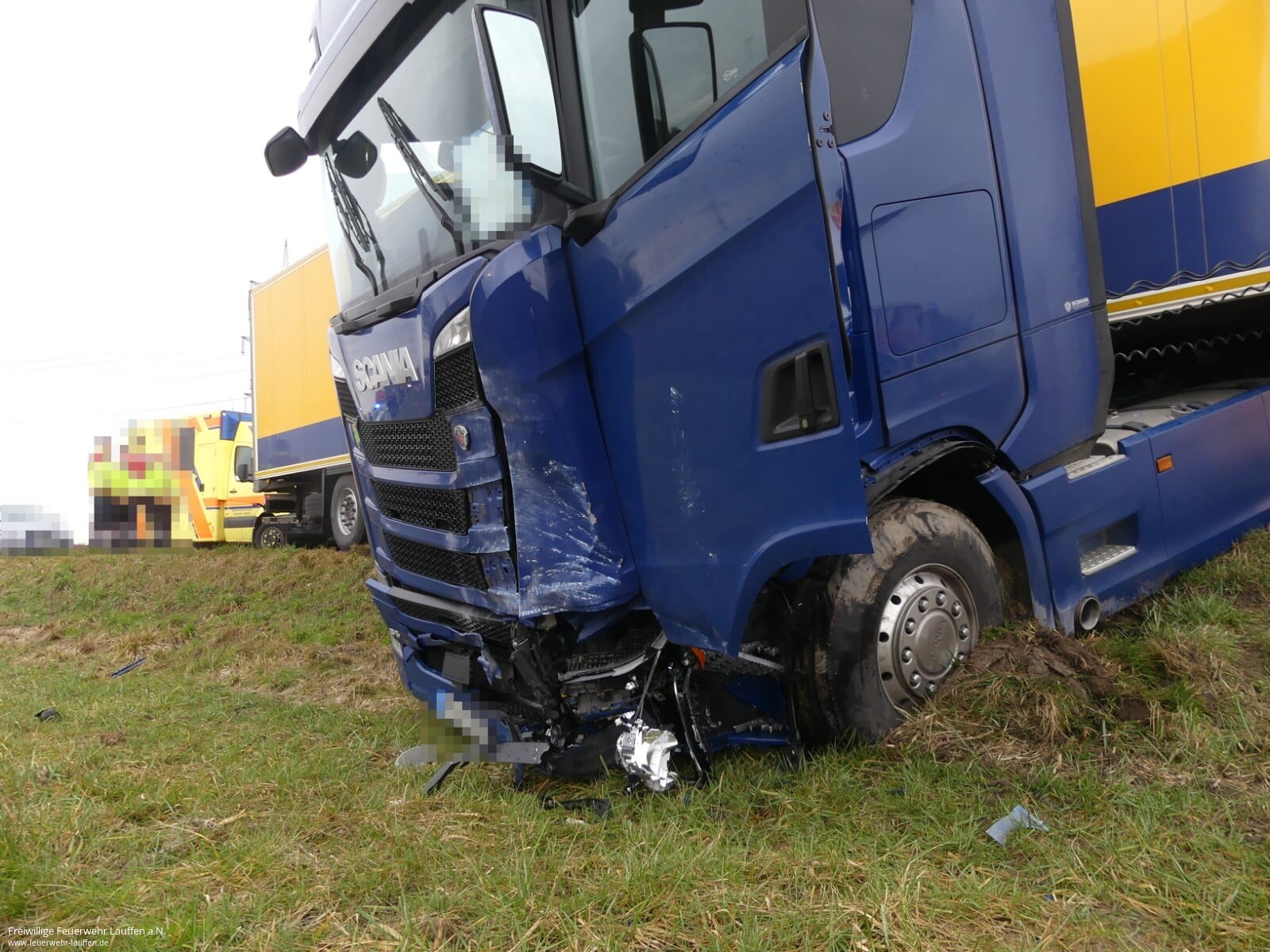 Die Fahrerin eines Renault Twingo kam in den Gegenverkehr und kollidierte dort mit einem entgegenkommenden Sattelzug. Durch den heftigen Aufprall wurde der Twingo von der Straße auf einen tieferliegenden Feldweg geschleudert, auf dem er auch zum Stehen kam. Die Eintreffenden Rettungskräfte konnten nur noch den Tod der 20 Jährigen Fahrzeuglenkerin feststellen. Der Fahrer des Sattelzuges kam mit einem Schock davon.