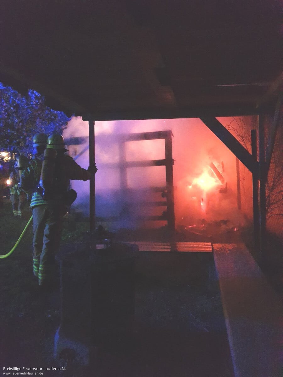 Beim Eintreffen an der etwa 300 Meter vom Feuerwehrhaus gelegenen Einsatzstelle, konnte vom Einsatzleiter ein aufgebockter Bauwagen auf einem eingezäunten Gartengrundstück festgestellt werden, welcher bereits in voller Ausdehnung brannte.