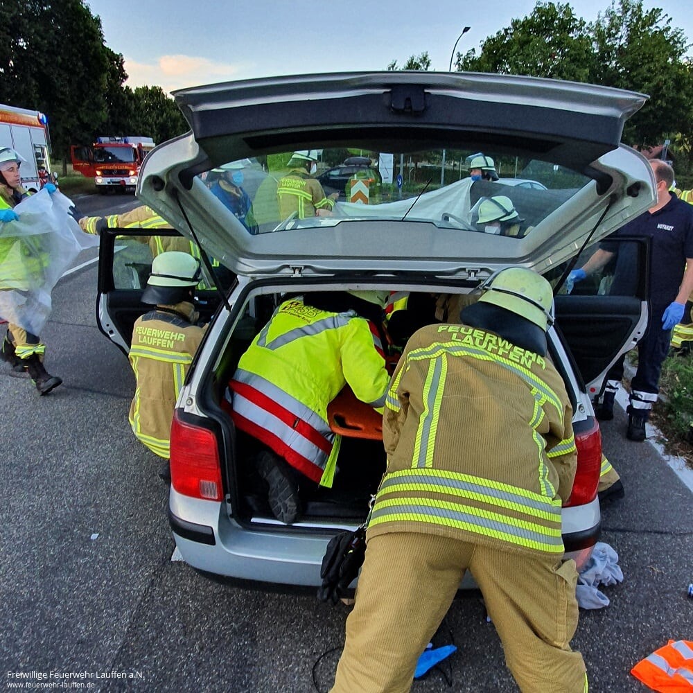 In enger Abstimmung mit Notarzt und Rettungsdienst wurde die schwer traumatisierte Person von der Feuerwehr unter Einsatz von Glasmanagement und hydraulischem Rettungsgerät schonend und lagegerecht aus dem PKW gerettet. Vor dem Hintergrund des Unfallmechanismus und der Schwere der Verletzungen, kam zudem ein Rettungshubschrauber zum Einsatz, welcher den Patienten zur Weiterbehandlung in ein Klinikum verbracht hat.Zur Betreuung des PKW-Lenkers war ein Team der Notfallseelsorge im Einsatz.