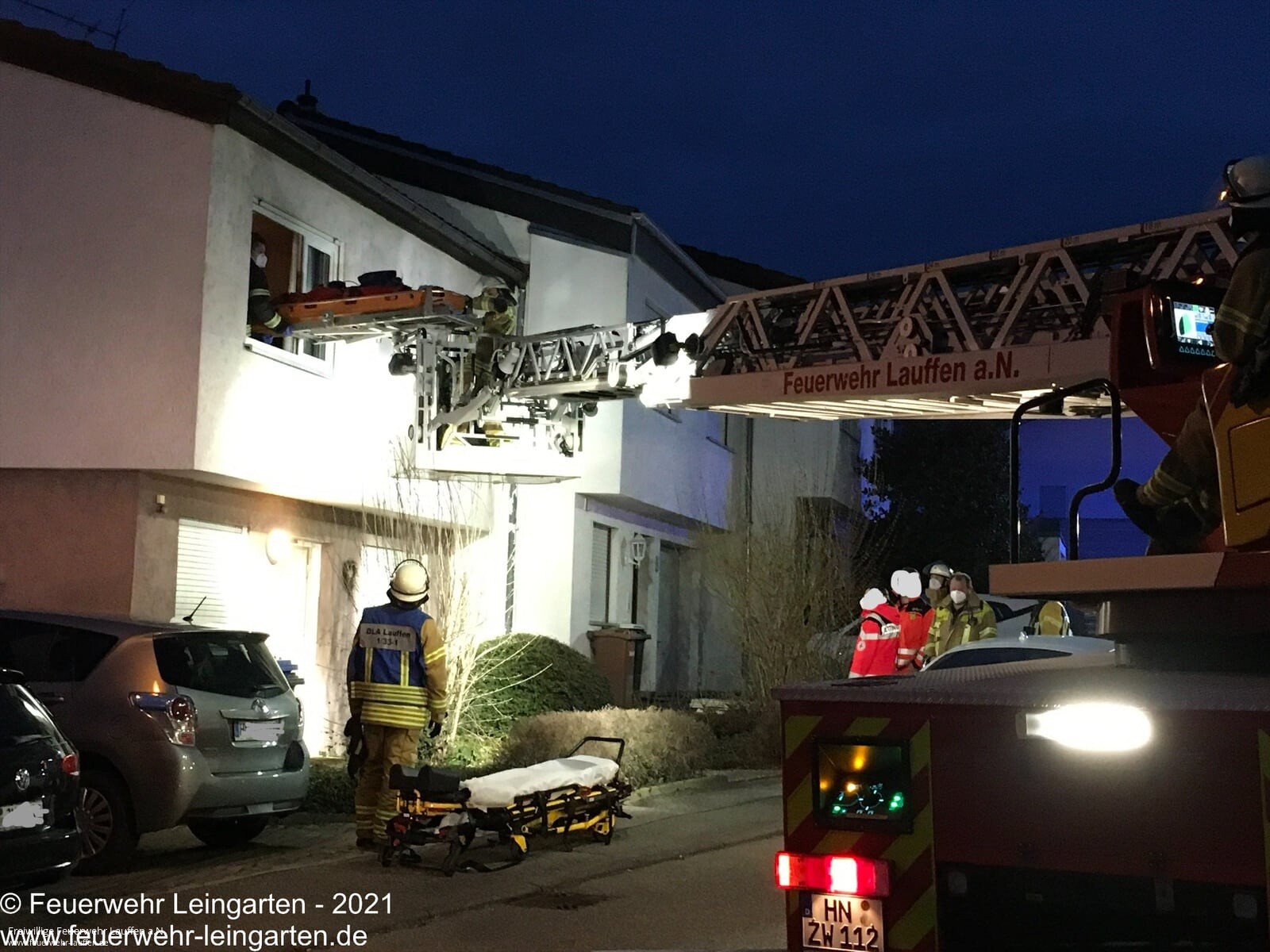 Am Donnerstagmorgen wurde die Einsatzabteilung der Feuerwehr Leingarten zur Unterstützung für den Rettungsdienst alarmiert. Eine Person musste aufgrund derer körperlichen Verfassung medizinisch versorgt werden. Dem bereits zuvor alarmierten Rettungsdienst war es aufgrund des engen Treppenhauses nicht möglich die Person aus dem ersten Stock des Wohnhauses in den Rettungswagen zu bringen, um die medizinische Versorgung im Krankenhaus fortsetzen zu können. Parallel zur Feuerwehr Leingarten wurde die Freiwillige Feuerwehr Lauffen zur Unterstützung mit deren Drehleiter alarmiert. In kooperativer Zusammenarbeit mit den Kameraden aus Lauffen wurde die Person zu einem Fenster heraus auf eine speziell am Korb der Drehleiter angebrachten Trage verbracht. Von dort konnte die Person patientengerecht herab auf die Straße und im Anschluss in den Rettungswagen gebracht werden.