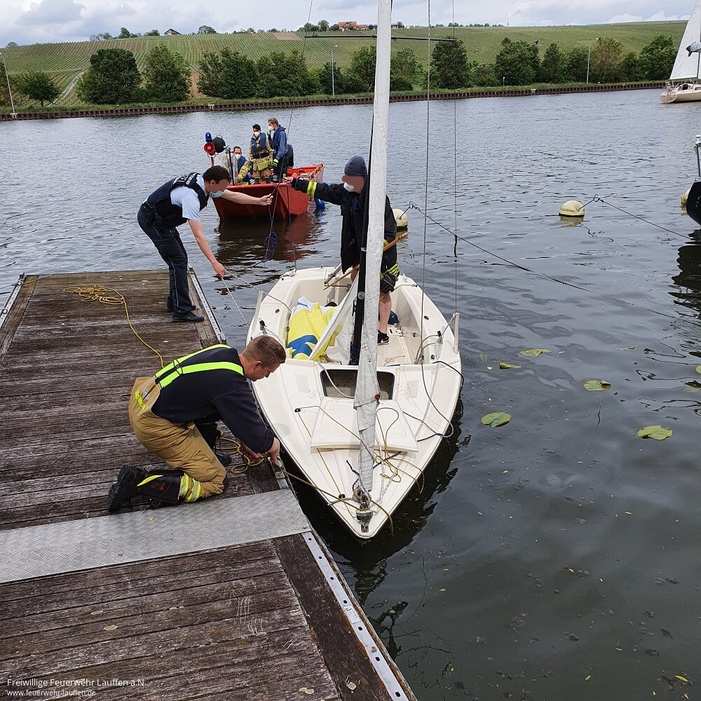 Durch die Feuerwehr Lauffen a.N. wurden das Rettungsboot und das Mehrzweckboot zur Menschen- und Bootsrettung im Oberwasser eingesetzt. Die ebenfalls aus Wahlheim und Gemmrigheim mit ihren Booten angefahrenen Feuerwehren konnten die Person bis zum Eintreffen der Lauffener Boote bereits aus dem Neckar retten und das teilweise vollgelaufene Segelboot ins Schlepptau nehmen, um dies zur Anlegestelle nach Lauffen zu verbringen.