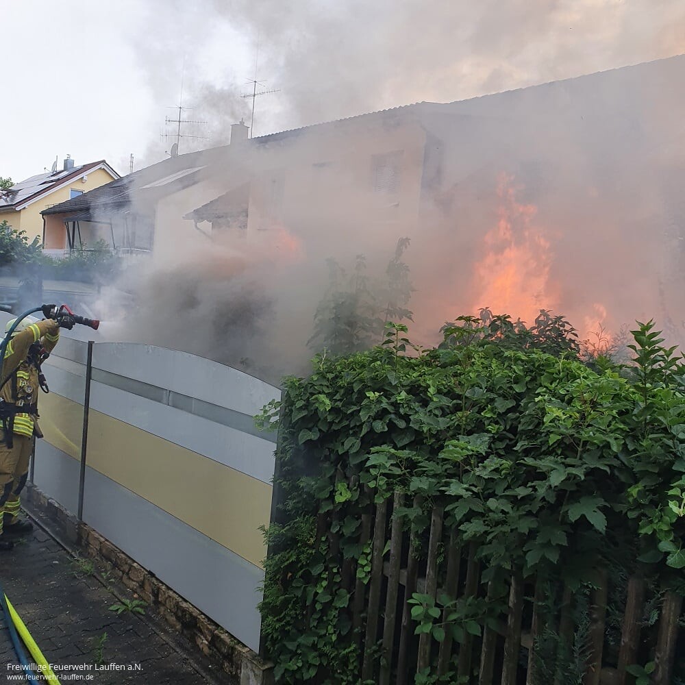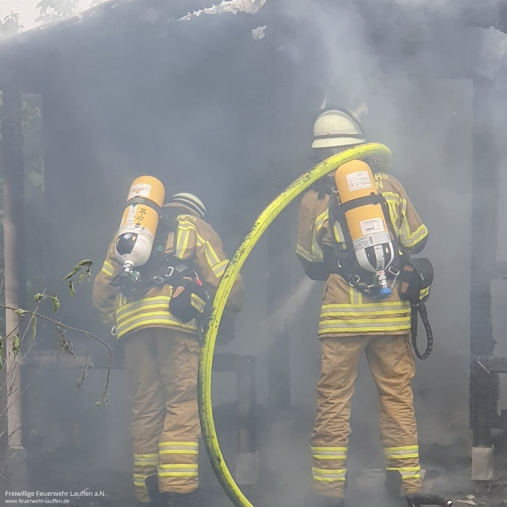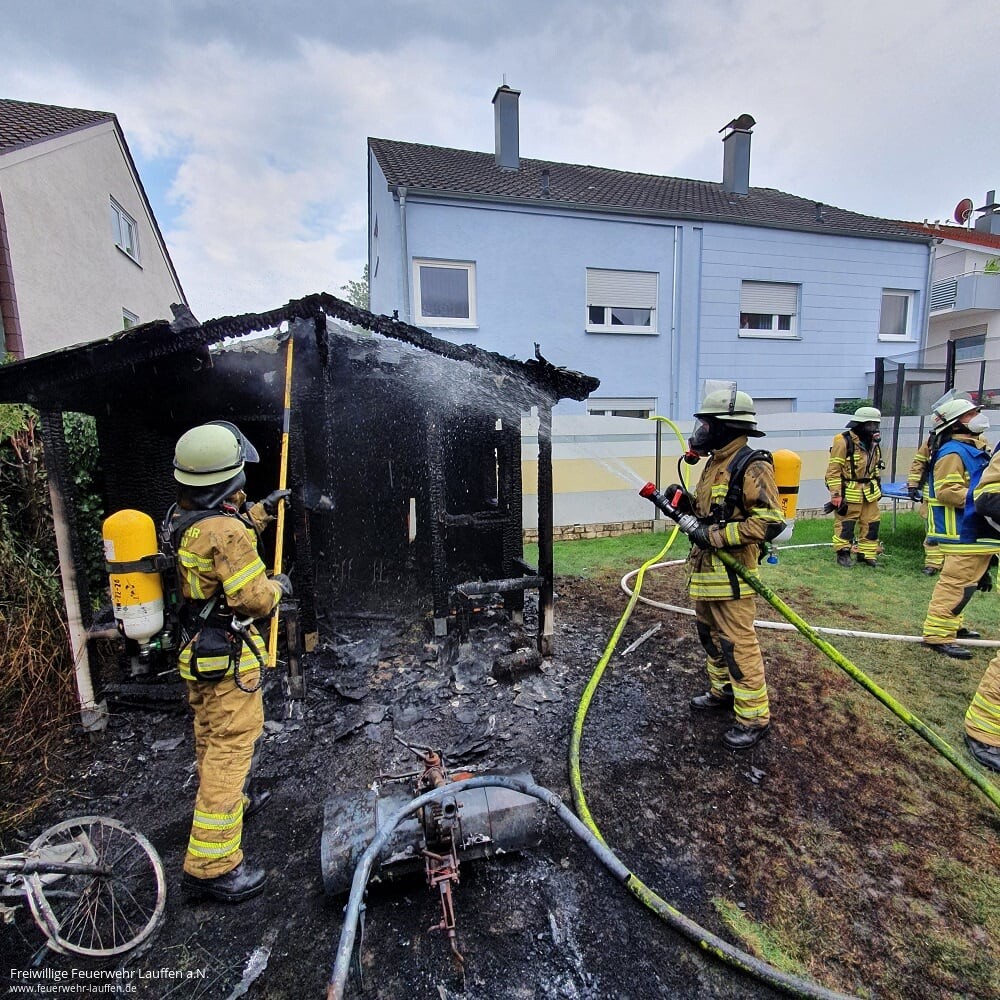 Mit dem Alarmstichwort „Rauchentwicklung Wohngebäude“ wurde die Feuerwehr Lauffen in den frühen Abendstunden in ein Wohngebiet alarmiert. Noch während der Anfahrt wurde der Alarmierungsgrund auf auf den Brand eines Gartenhaus und der Gefahr des Übergreifens des Feuer auf ein Wohngebäude konkretisiert.