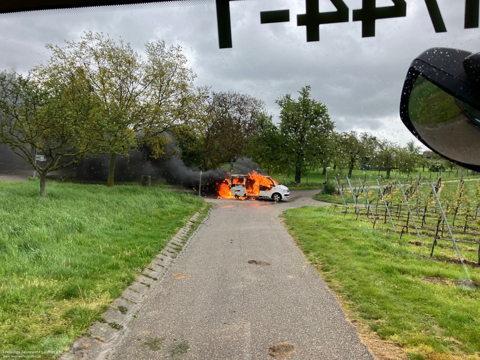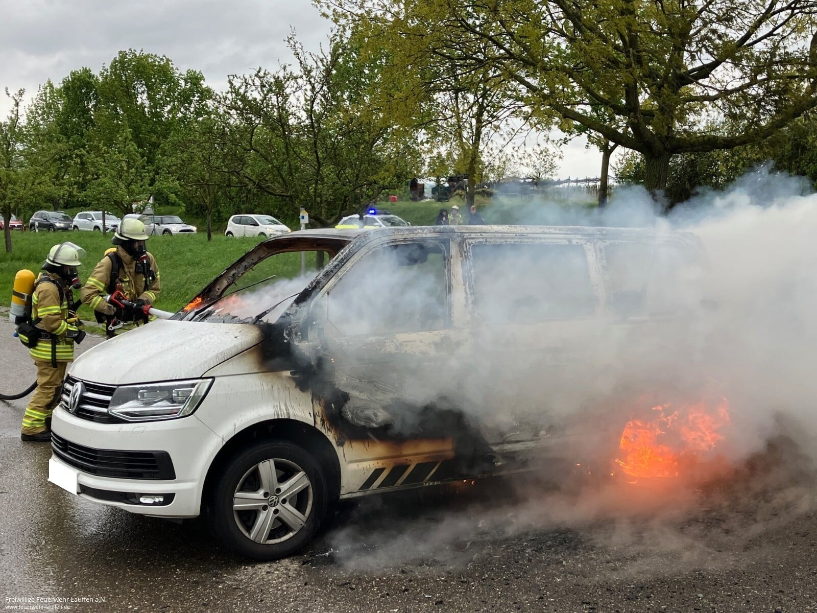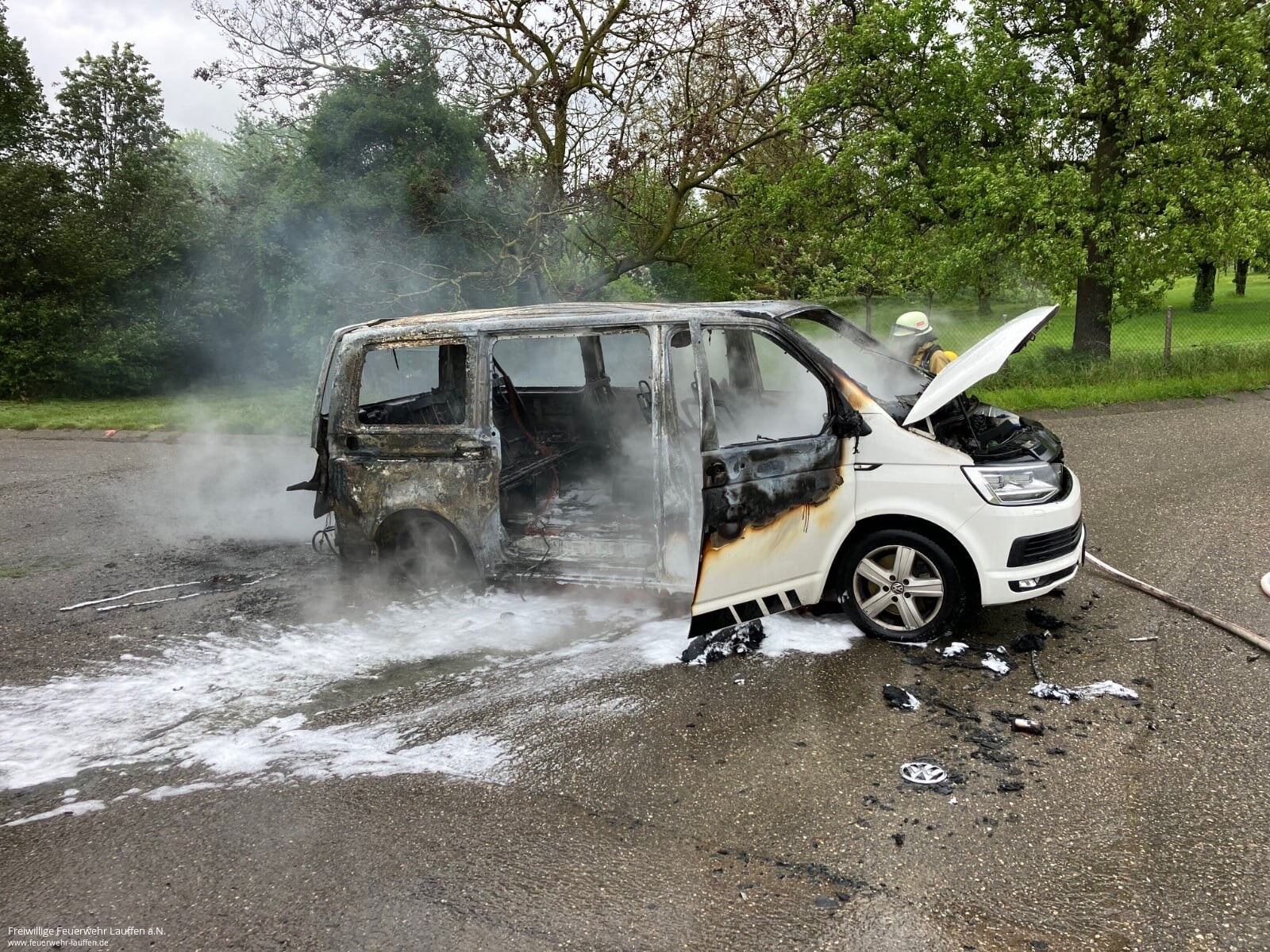Es entwickelte sich ein Brand, welcher schließlich den kompletten Kleinbus zerstört hat.