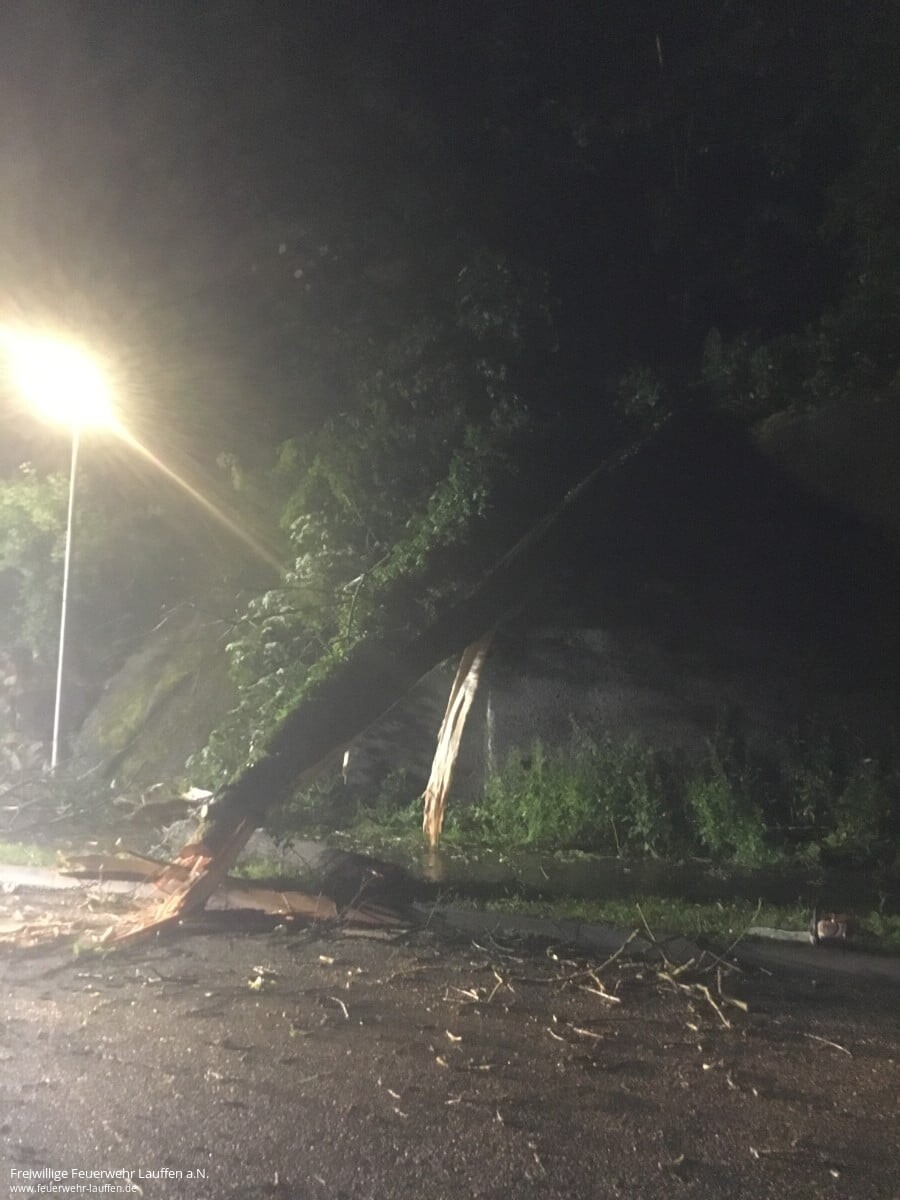 Am Abend des 30. Mai wurde die Feuerwehr zu einem Windbruch bei der Zufahrt zur Fa. Märker Zement, sowie dem Neckartalradweg alarmiert.