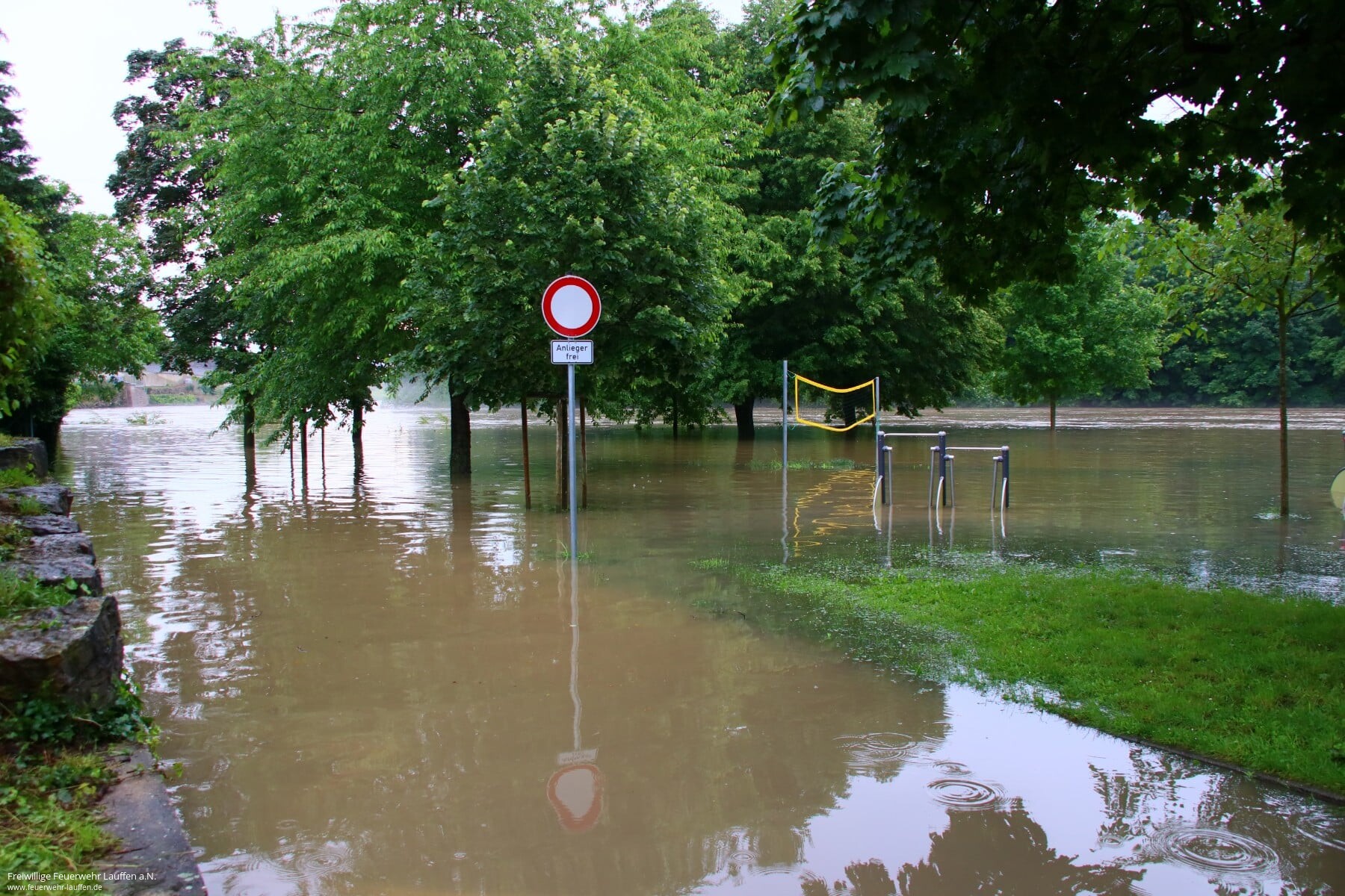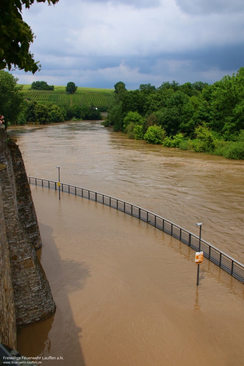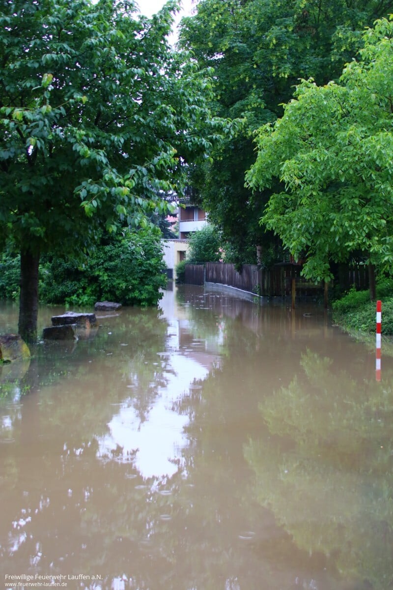 Die Anwohner wurden vorgewarnt und die Maßnahmen gemäß Alarmplan bis zu einem Pegelstand von 5.20 Meter durchgeführt. In der Nacht zum Samstag wurde dann bei steigendem Pegel ab 5.10 Meter das Feuerwehrhaus dauerhaft besetzt. Am Morgen wurde die Lauffener Bürgermeisterin sowie der stellvertretende Kreisbrandmeister informiert. Ab 10 Uhr am Samstag wurden die Einsatzkräfte aufgestockt und die Ortsdurchfahrt/Kiesstraße gesperrt, diese konnte erst am Montagabend wieder für den Verkehr freigegeben werden.