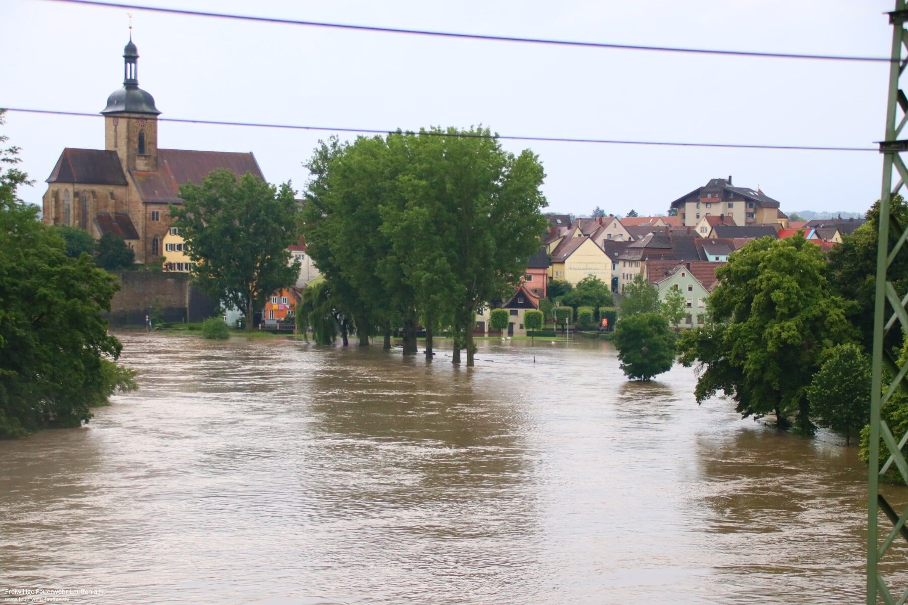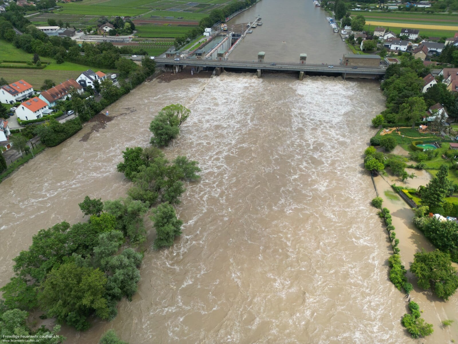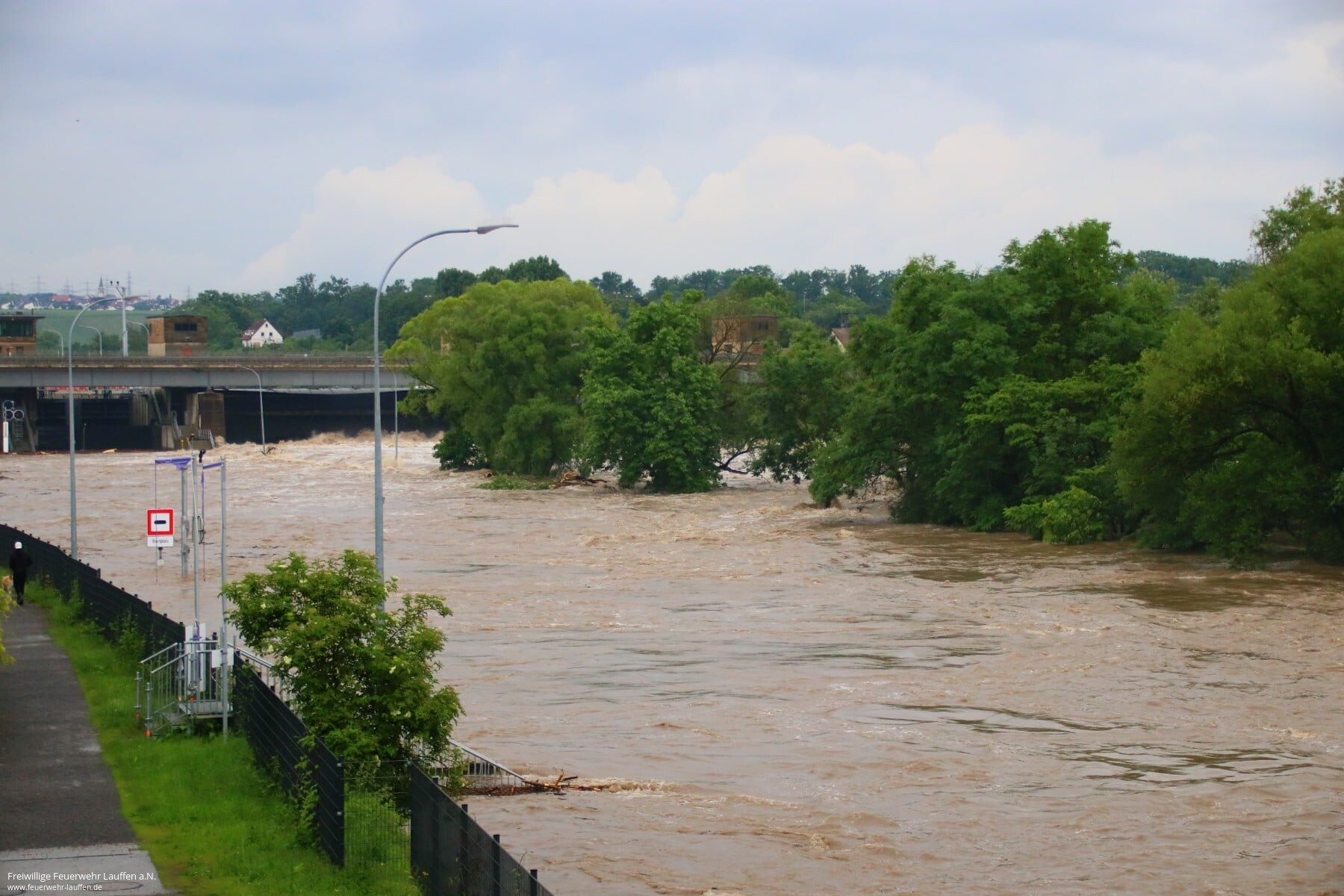 Die Anwohner wurden vorgewarnt und die Maßnahmen gemäß Alarmplan bis zu einem Pegelstand von 5.20 Meter durchgeführt. In der Nacht zum Samstag wurde dann bei steigendem Pegel ab 5.10 Meter das Feuerwehrhaus dauerhaft besetzt. Am Morgen wurde die Lauffener Bürgermeisterin sowie der stellvertretende Kreisbrandmeister informiert. Ab 10 Uhr am Samstag wurden die Einsatzkräfte aufgestockt und die Ortsdurchfahrt/Kiesstraße gesperrt, diese konnte erst am Montagabend wieder für den Verkehr freigegeben werden.