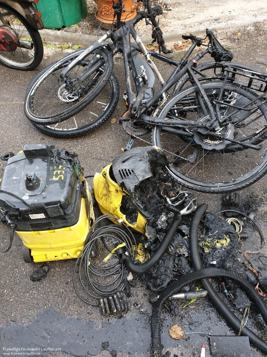 Gegen 9 Uhr am Sonntagmorgen wurde die Feuerwehr Lauffen mit dem Einsatzstichwort „Fahrrad-Akku explodiert in Garage“ in die Wilhelmstraße alarmiert.
