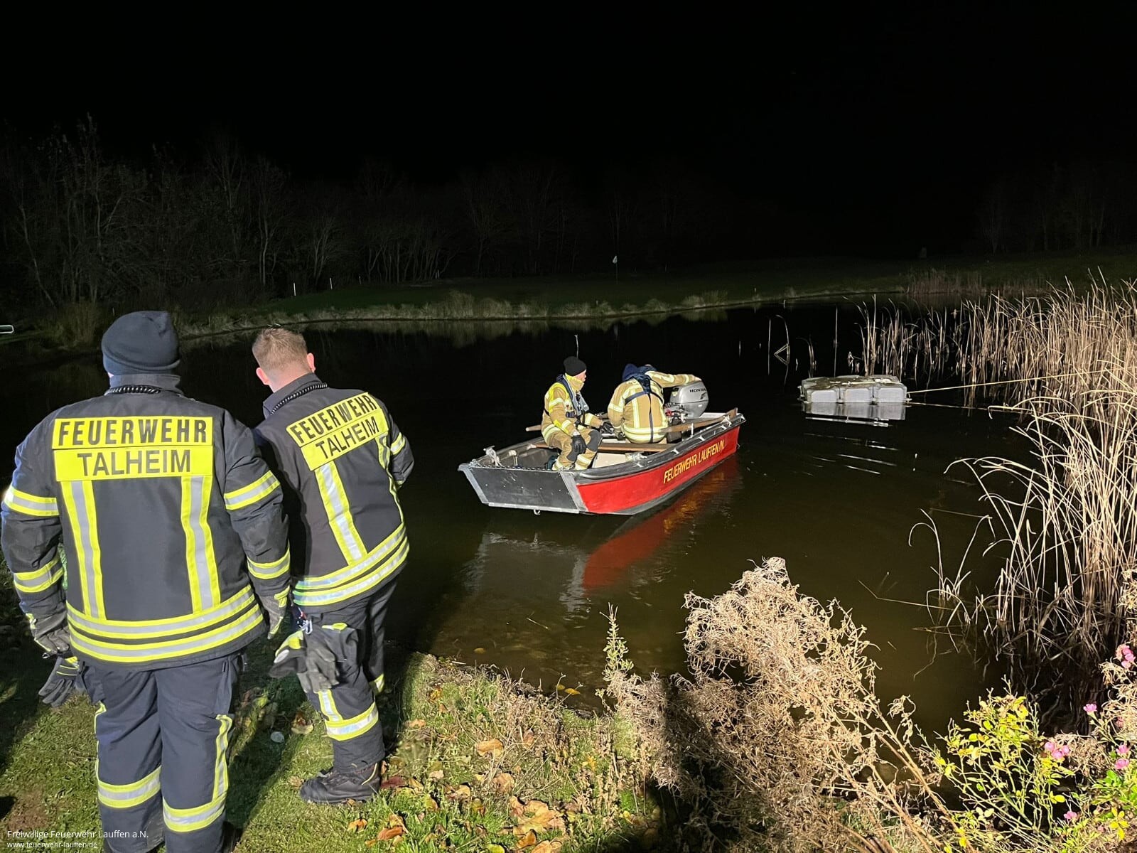Am 23.11.2024 wurde die Feuerwehr Talheim um 19:59 Uhr mit dem Stichwort „Tiernotlage“ an den Talheimer Hof alarmiert. Vor Ort meldeten Mitarbeiter des angrenzenden Golfplatzes eine verletzte Gans, die sich mitten auf einem Teich im Schilfbereich aufhielt.