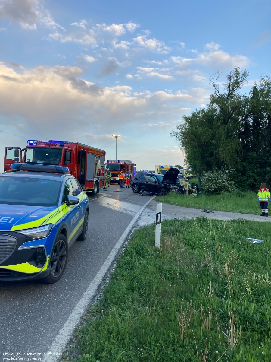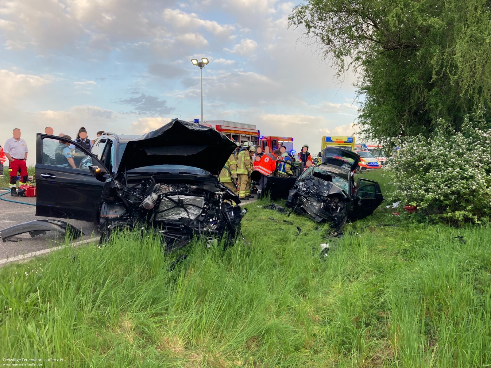 Die Feuerwehr Lauffen wurde am Freitagabend zu einem schweren Verkehrsunfall mit zwei beteiligten PKW auf die L1105 zwischen Siegersgrund und Bortental alarmiert, auch der Rettungsdienst wurde mit starken Kräften an die Unfallstelle entsandt.