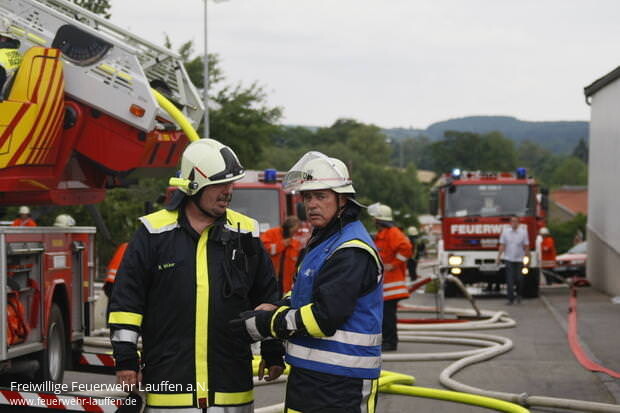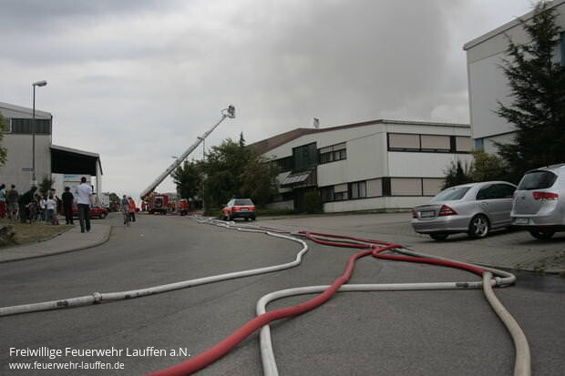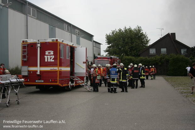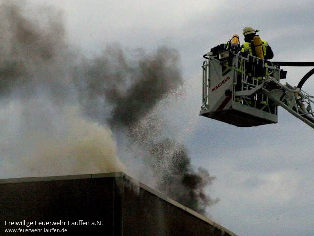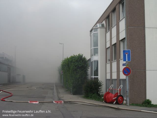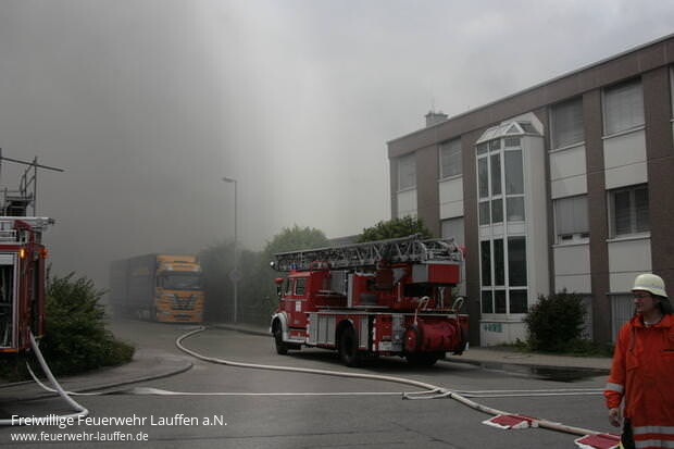 Beim Eintreffen der ersten Einsatzkräfte war bereits eine starke Rauchentwicklung festzustellen. Auf Grund der guten Kentnisse über den Betrieb durch viele Begehungen und Übung wurde sofort Vollalarm für die Feuerwehr Schwaigern ausgelöst. Nur wenig später wurden eine Drehleiter und ein GW-Mess angefordert.