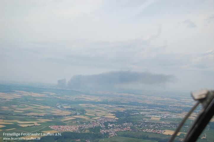 Ein Polizeihubschrauber kreiste über der Einsatzstelle und machte Fotos und Aufnahmen mit der Wärmebildkamera, die der Einsatzleitung für die Lagebeurteilung äußerst hilfreich waren. Auch die Ausbreitung der Rauchwolke wurde überwacht und gemeldet.