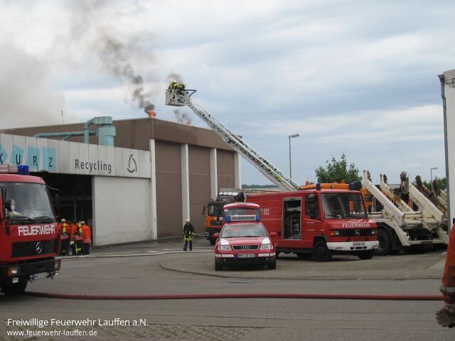 Um 11:31 Uhr löste die Brandmeldeanlage der Fa. Kurz Recycling im Schwaigerner Industriegebiet aus. Die Fa. Kurz verarbeitet Material aus der Sammlung der blauen und gelben Tonne.