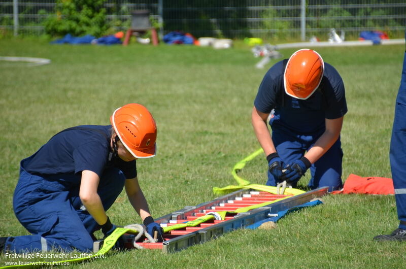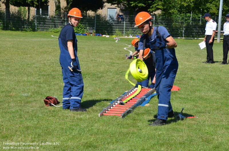Der sportliche Teil besteht aus einem 400-Meter-Staffellauf und Weitsprung. Beim Feuerwehrwissen muss jedes Gruppenmitglied 2 Buchstaben ziehen und dann zu diesen Buchstaben jeweils einen Gegenstand aus dem Löschfahrzeug holen und erklären. Bei der Feuerwehrtechnik entscheidet das Los ob die kleine Wasserkanone, ein Schaumangriff oder Wasser über Graben gezeigt werden musste. Der Hindernisparcours wird mit verbundenen Augen absolviert. Hierbei musste sich die Gruppe wirklich „blind“ auf die Anweisungen des Gruppensprecher verlassen.